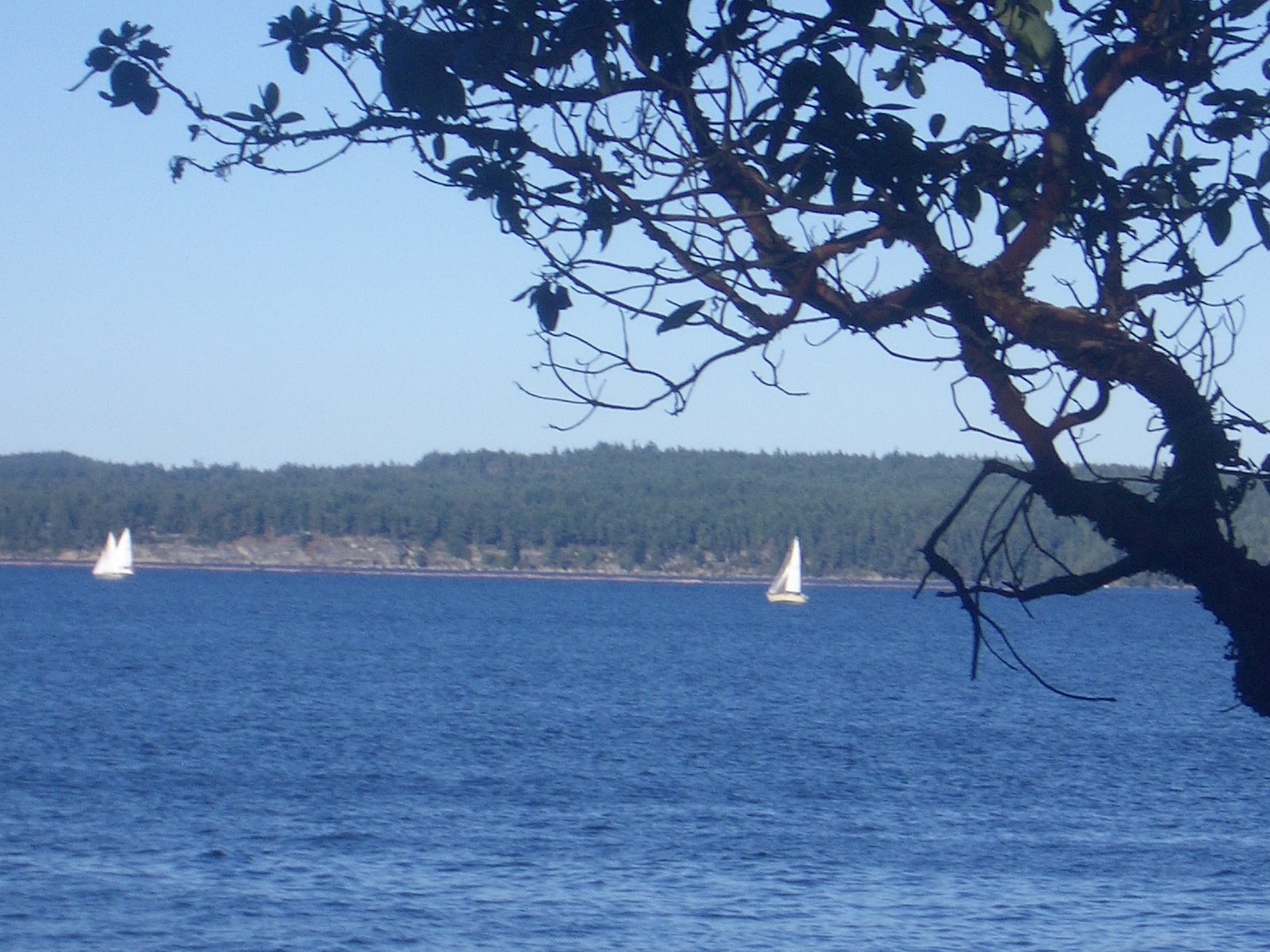 That was the view from my porch last Wednesday evening, Wednesdays being sailboat race night here through the summer.
