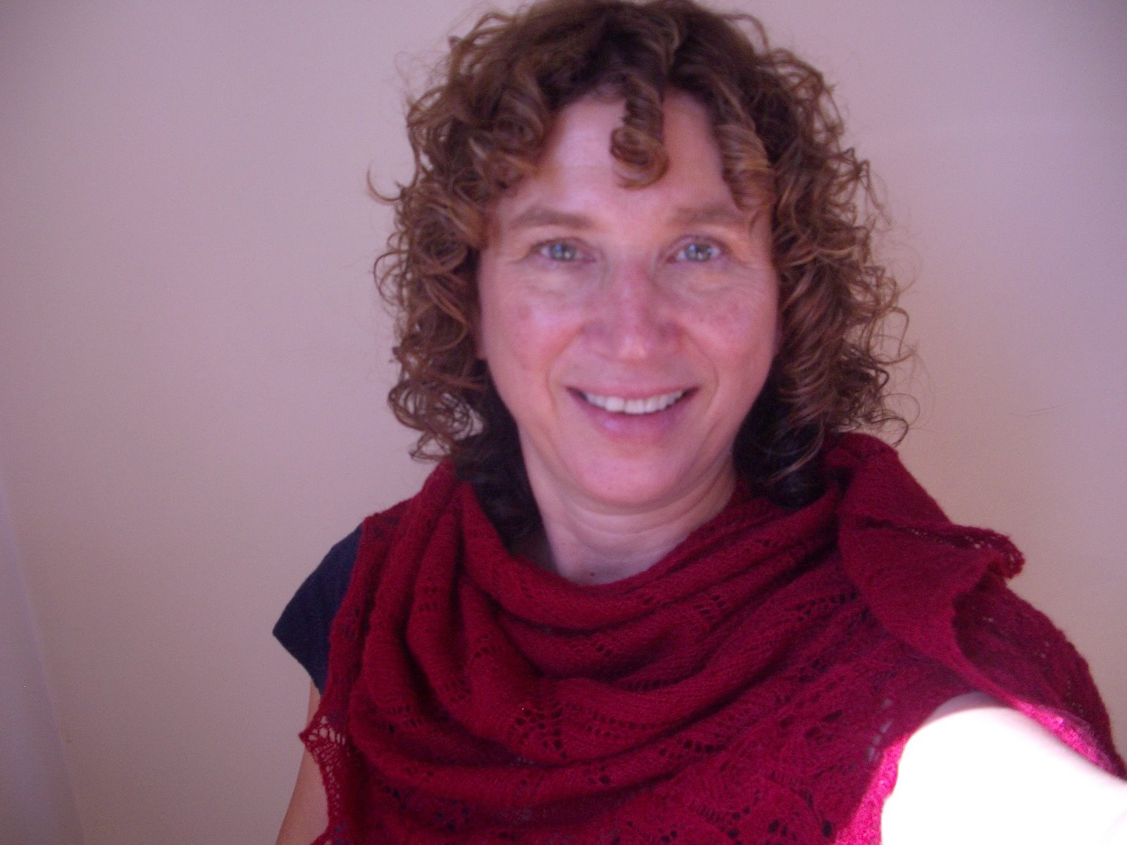 I had to include one shot to let you see the design stretched out more clearly, the second photo from the bottom–my daughter took this just before we headed out to our little island pub for dinner. Not a great shot, but you get the idea. And no, I didn’t wear the shawl there — it was 28 degrees here today (Celsius, of course!)
