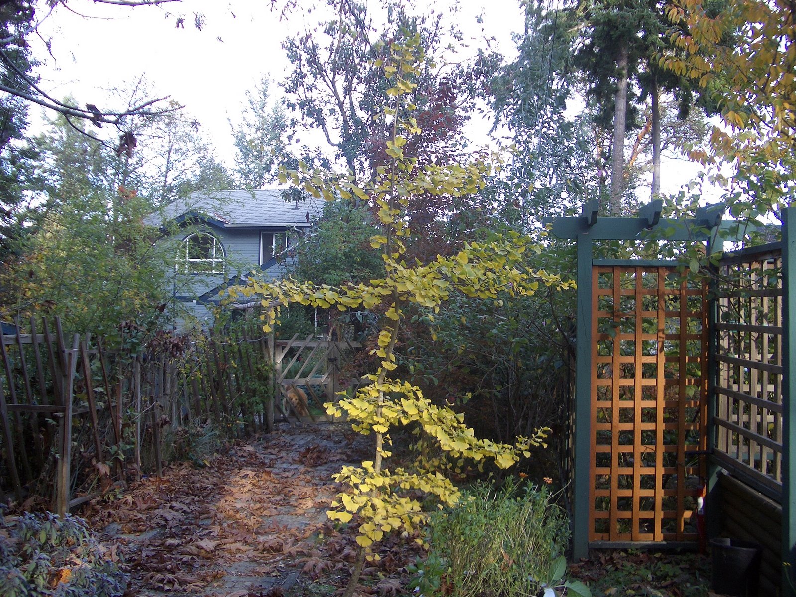 6. Coming back from my run today, I savoured the fall air: it’s a mix of spicy, sweet, earthy, musty, and smoky scents with the salt air mixed in. Makes me think of something between Lagavullun and a good shiraz, with a spritz of my Terre d’Hermès to mix the olfactory with the gustatory! Just scrumptious, at any rate — I love this time of year, even as the clouds sit heavier and heavier on the horizon. Here’s something to brighten the grey day: our Ginkgo biloba (Autumn gold) finally hitting a size and maturity where it makes an impact on an October day.