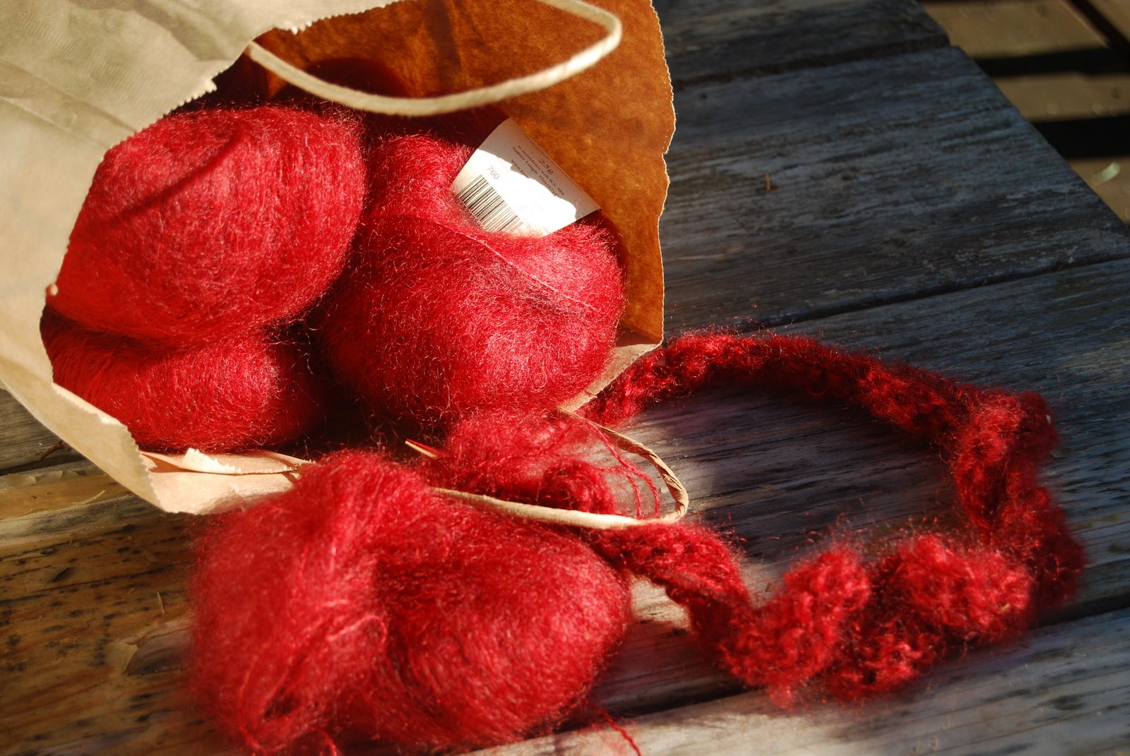 This cranberry-red mohair is turning into this and will be a gift for a friend who will be crossing the Pacific with her husband in a sailboat early next year — a romantic voyage for a red sweater, no? like my blue Le Slouch jauntily doing the Parisian thing, my knitting travels on without me, taking me vicariously through the world.