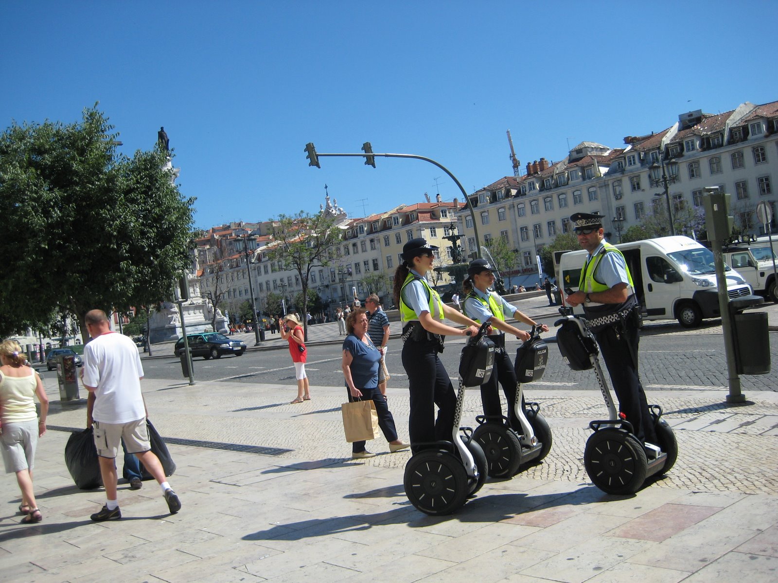 This photo, which has nothing to do with this post, was taken in Lisbon this summer, near the Praca Rossio. I’m including it ’cause I think you need a visual and I’ve got nothing else — plus I love the idea of police patrolling on Segways — pretty comic, don’t you think?