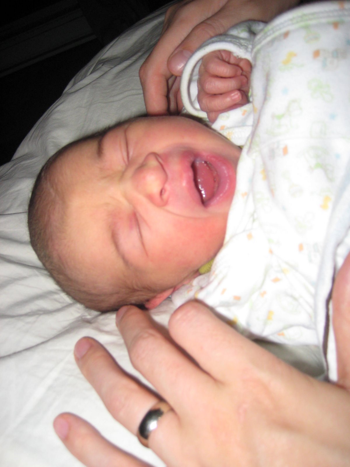 Meg: I see Bronwen’s lips, especially — very like when B was born, actually. And I’m starting to see her in the eyes as well. The first day or so, though, she was absolutely McG!