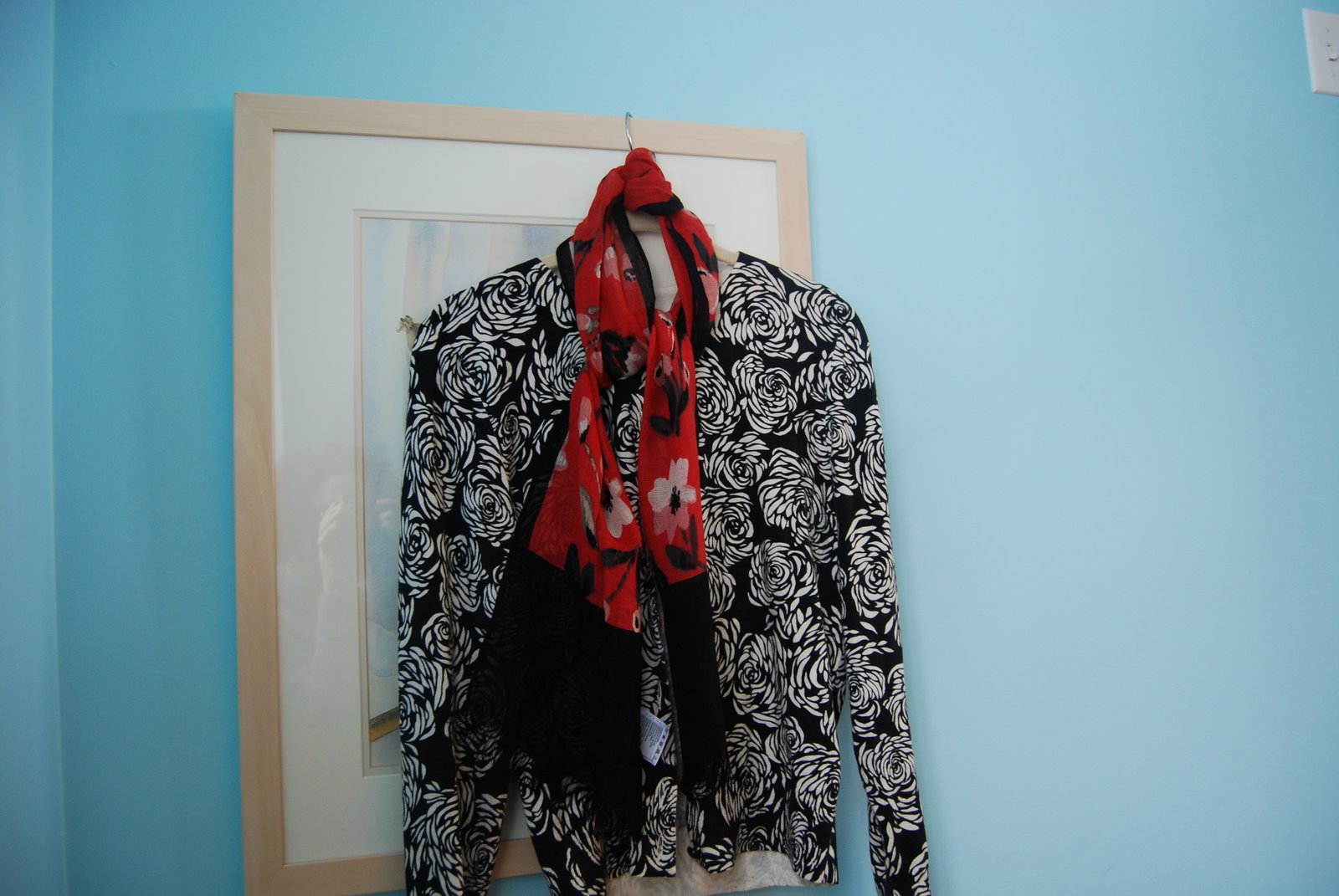 With the rose sweater, scale of two pieces is closer so it looks more muddled, not as deliberate.