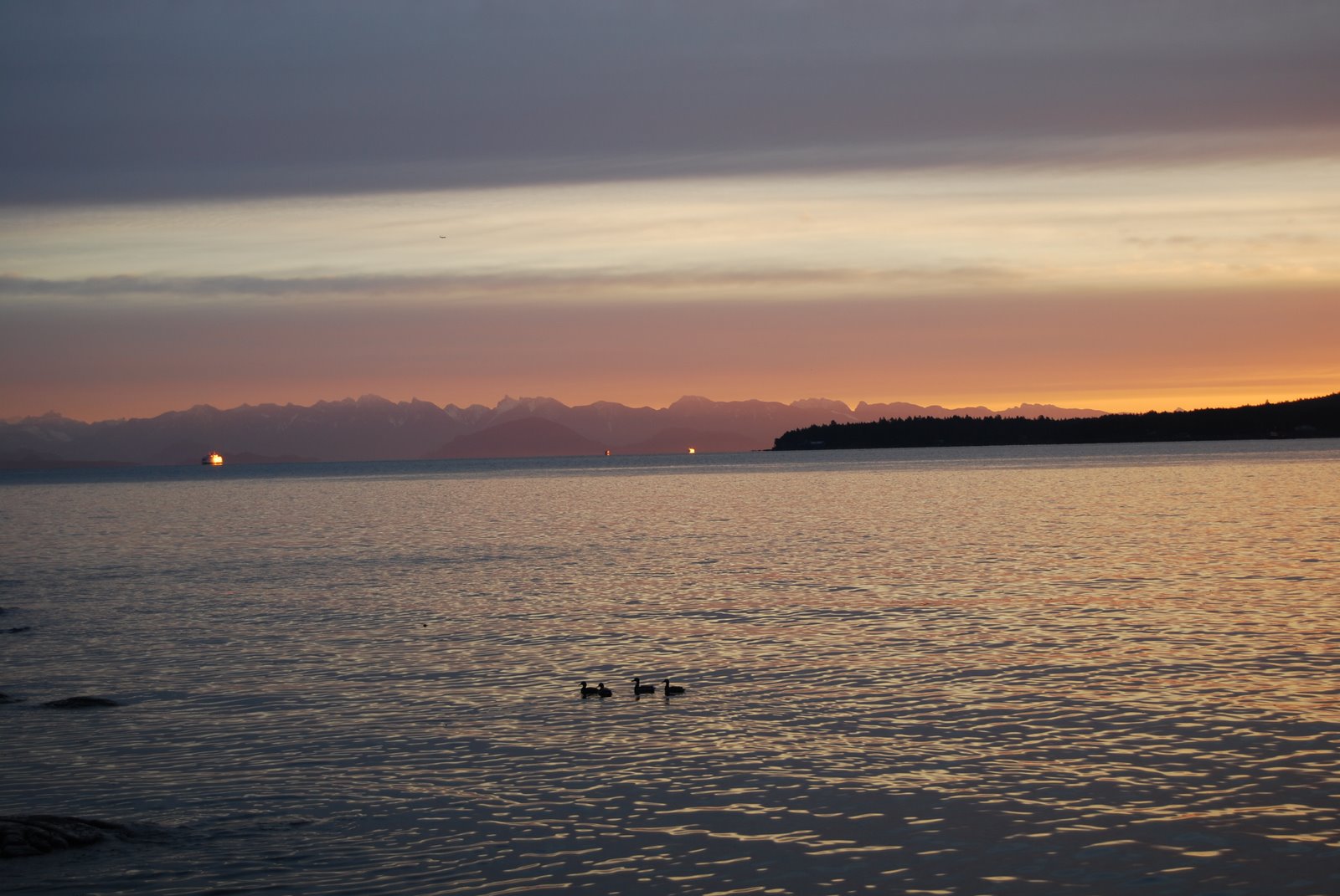Today is scheduled to be rainy and grey as are most of the next five days. Right now, I look across the water and see low marine cloud enfolding the north end of Gabriola, and the line you see in these photos between dark sky and water is narrowing. But ten minutes ago, the sun was still promising cheer and I believed. . .