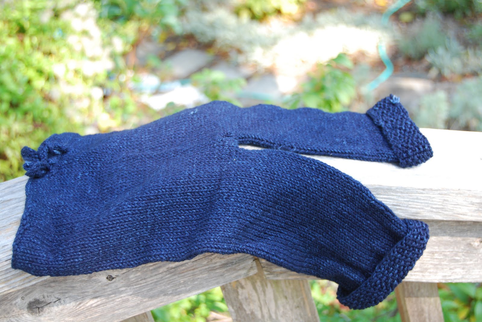 These are made of the same Rowan Denim I used for the Indigo Ripples skirt, and even after the first wash-and-dry, it’s showing that great denim fading that’s a big appeal of this yarn — and makes up for the hands being left blue after each knitting session.