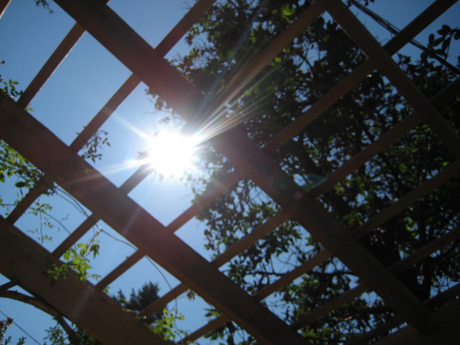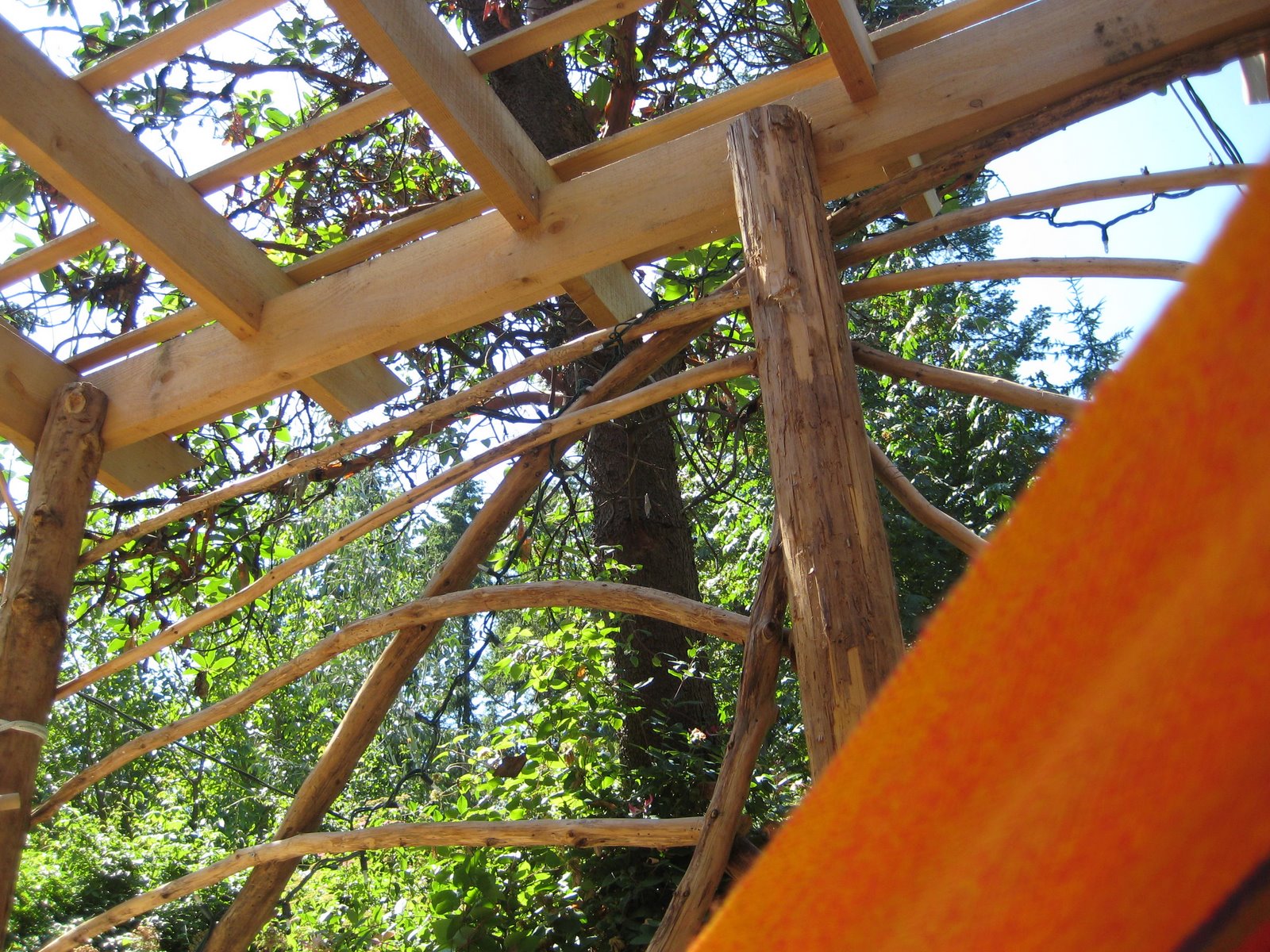 So today — BC Day, a holiday here and, I hope, where you are as well — is for savouring the delights of the season. Pater hung the hammocks my daughter brought back for us from Costa Rica years ago. He put one in our new pergola which provides a delicious dappled shade, and, if I’m too lazy even to read, offers a variety of shapes and patterns for me to survey, outlined against blue skies and much greenery.