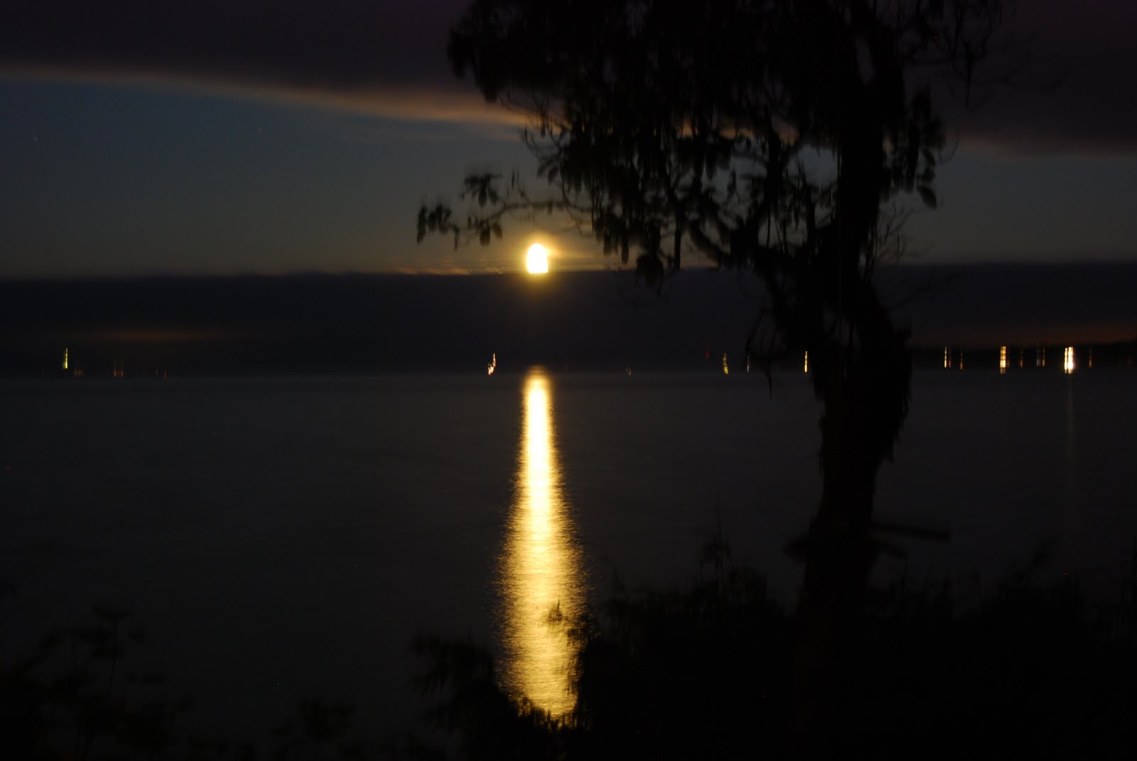 And while there’s some blur from the water’s movement as well as the moon’s and the other, manmade lights, it’s an effect I like.