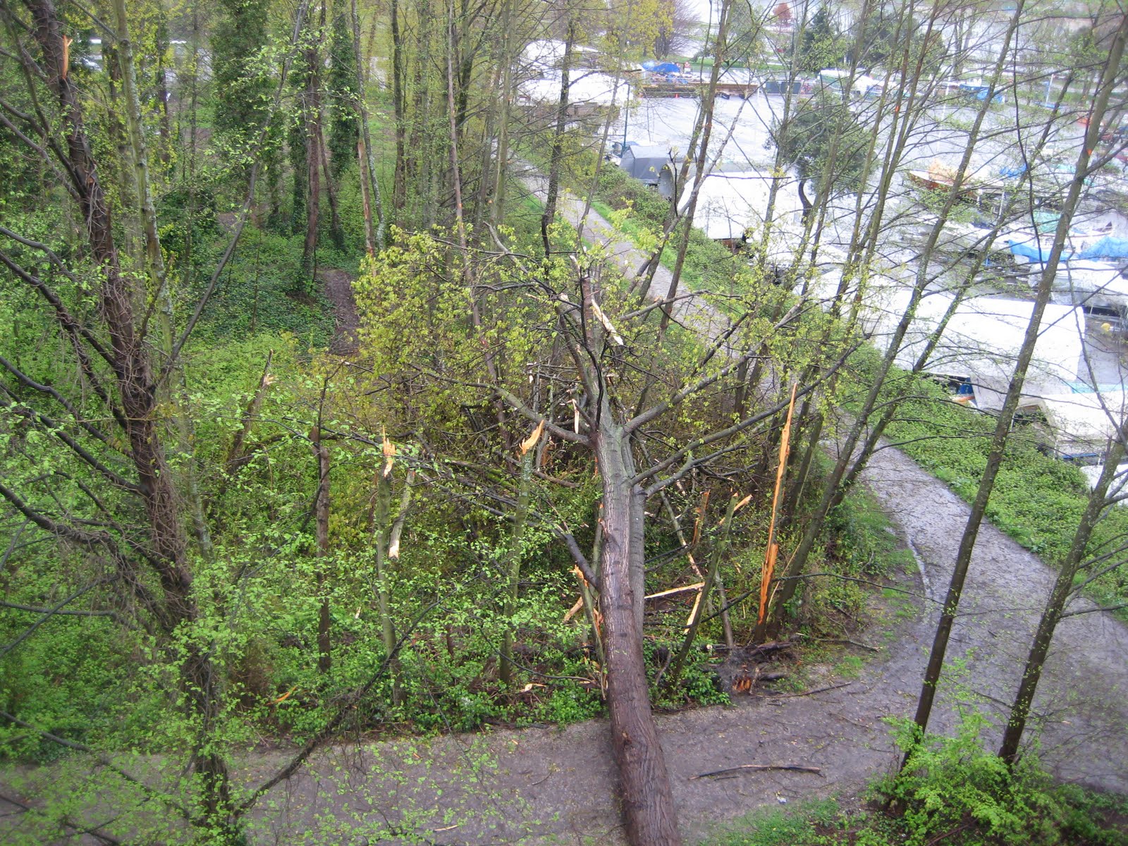 This large tree took several smaller ones with it as it crashed to the ground. I’m sure some of those boatowners (the lot adjoining is part of a marina, and many smaller boats are left there for the winter months, on land) thought it was a bit too close for comfort.