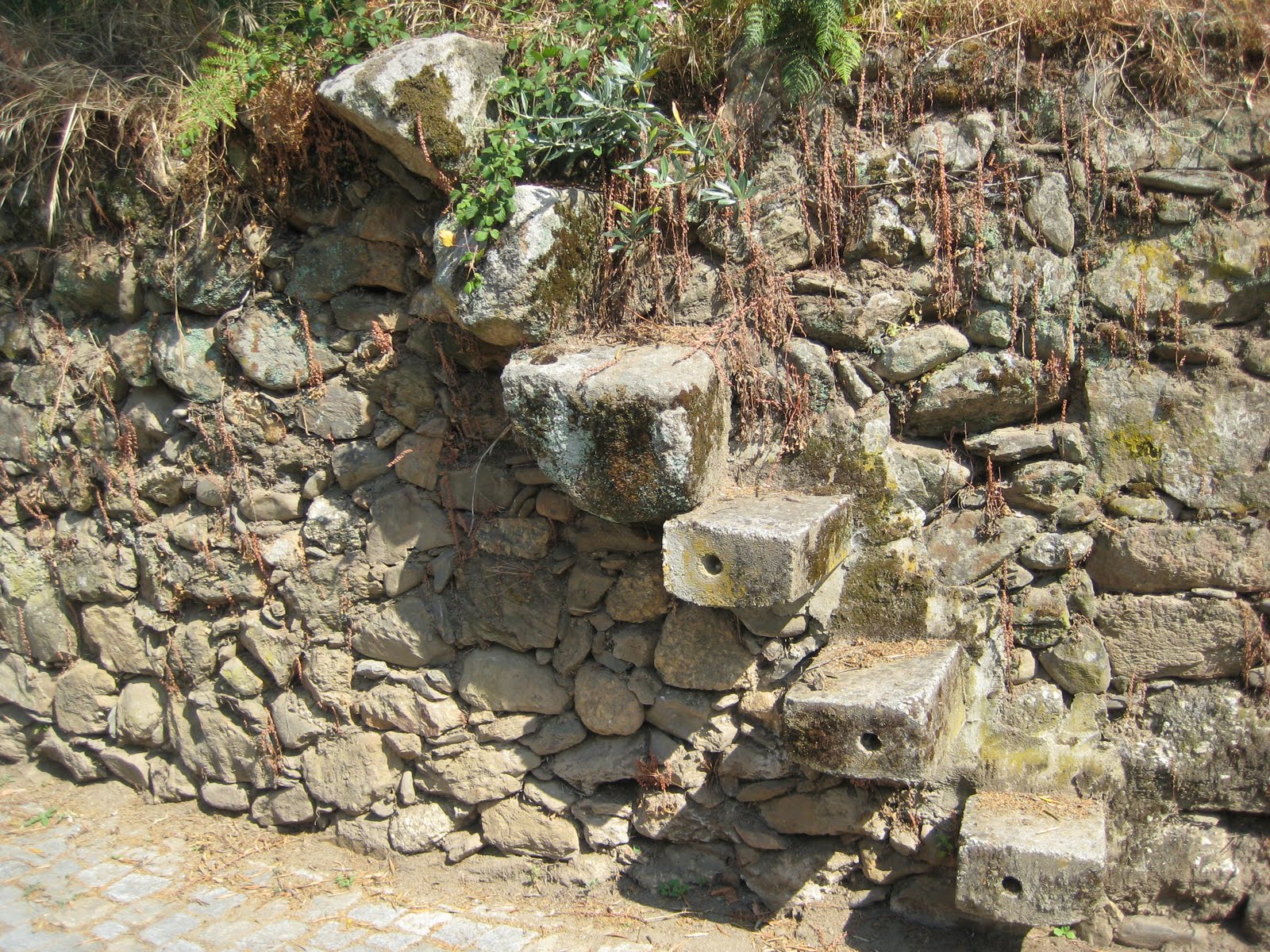 These long-since-collapsed stones, whose place in a set of stairs can barely be discerned anymore, like the exposed metal structure in the contemporary buildings, reveal the basic elements of a building, but are suffused with a nostalgic beauty even as they are being grown back into the earth, first by lichens, then by small resilient plants, eventually by drifting soil, a shrub, until they’ve disappeared to be discovered by some 24th-century archaeologist . . . Or just as likely, cleared away to make room for the bland, white-plastered, red-tile-roofed houses that are becoming just as plentiful in this area as the stone homes I love to look at, but might not be so keen to live in.