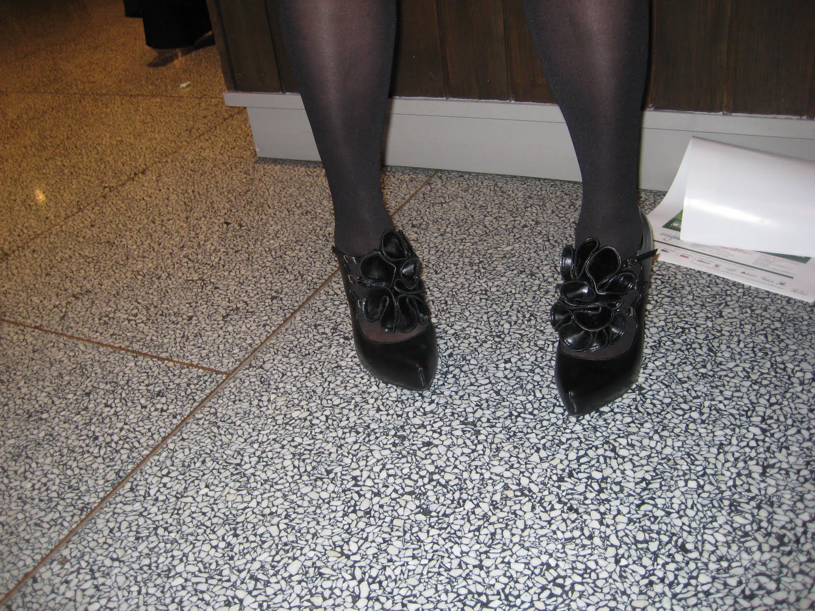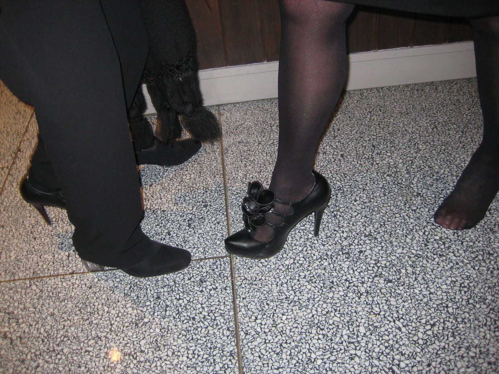 And if I ever get another invitation, I’m going to find a way to get out and about to photograph some outfits and/or shoes. I did manage one shot last night, of these two charming women who were near our table. I couldn’t help notice the black-and-white-jacketed woman commenting on her friend’s spectacular shoes — which were then removed and examined. I totally recognized that moment and hurried over to ask if I might snap shoes and friends.