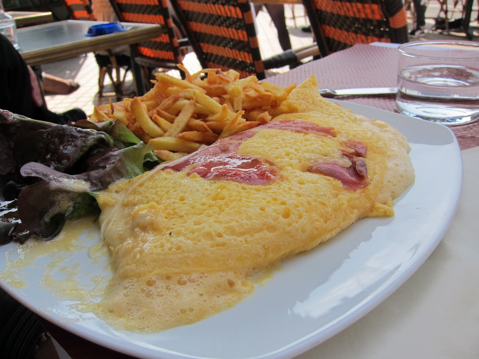 I’m not sure why the photos won’t load in the previous post — I’ve tried several different fixes, but no luck, so I’ll just add them here on their own. Above Salade landaise; below fluffy omelette and really good frites