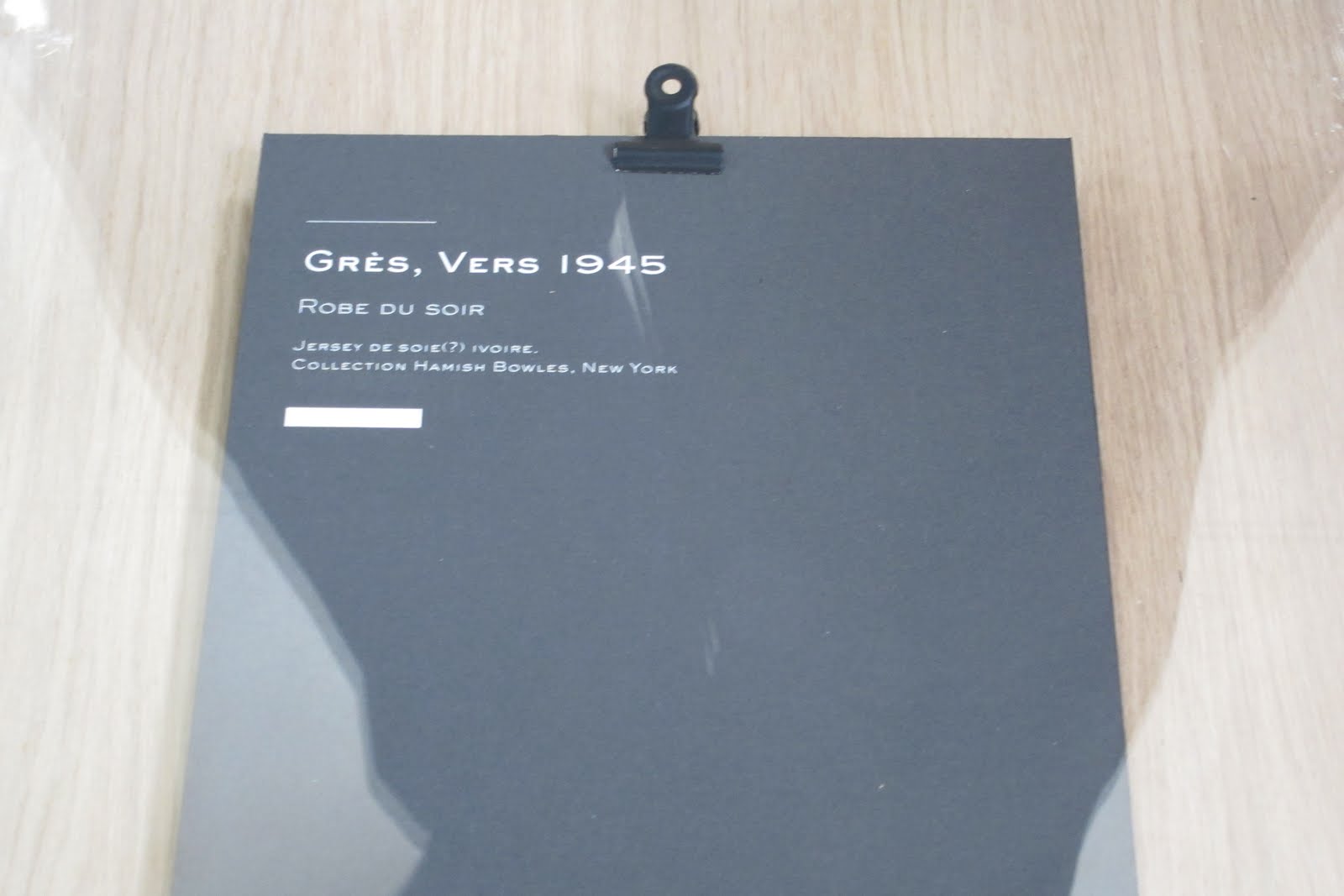 The dress dates from around 1945, according to the accompanying plaque.