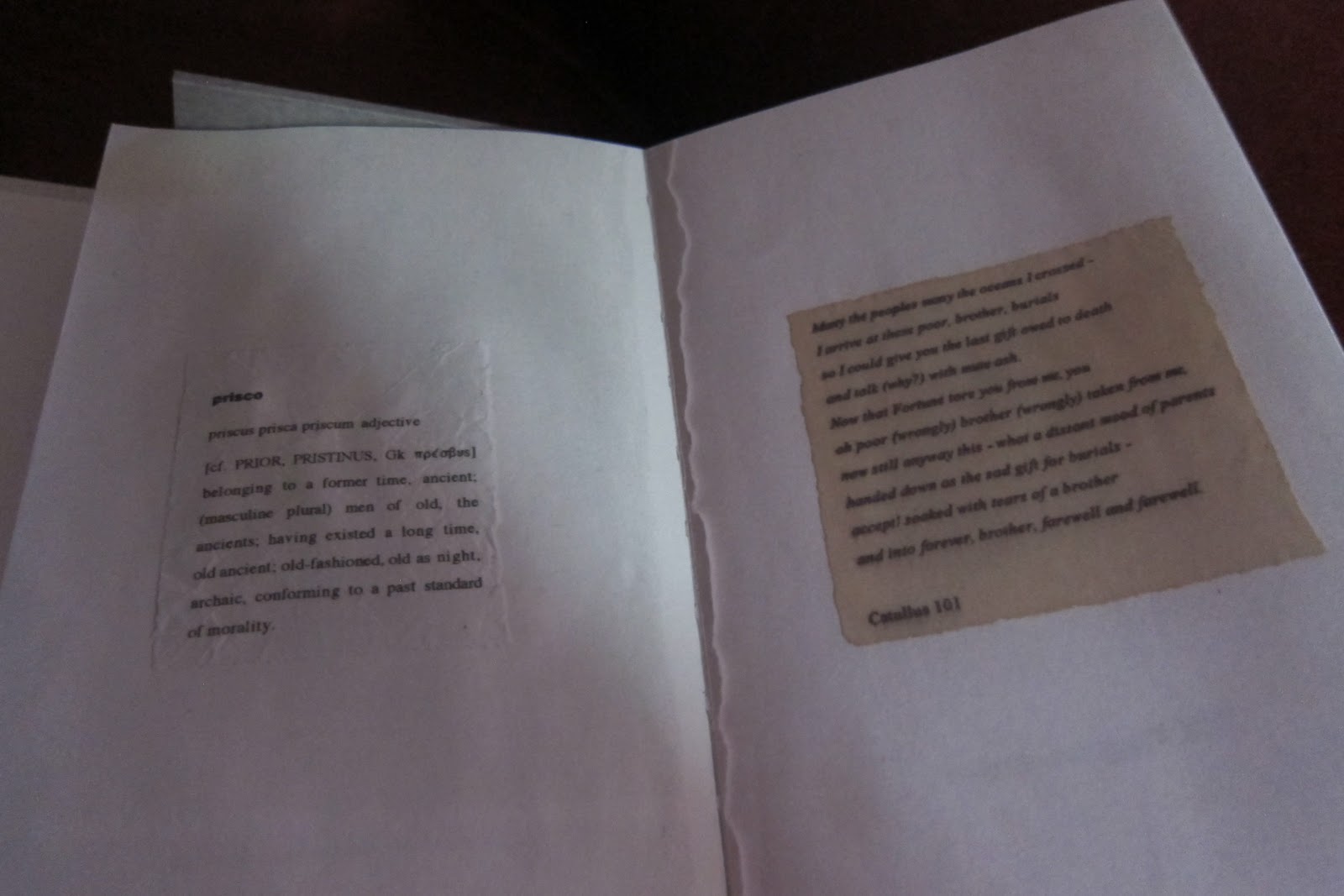 The left-hand pages offer, one by one, a lexicographic entry parsing the pronunciation and possible meanings and uses of each word in the poem, so that we see the work of translation as the work of mourning, grief layering centuries of grief. For me, having lost a brother suddenly when he was barely 19, myself 23, having — with my family — gone through his small collection of belongings discovering aspects of his life we’d scarcely intuited, the resonances of those griefs rangs loudly, folding me into their overtones.