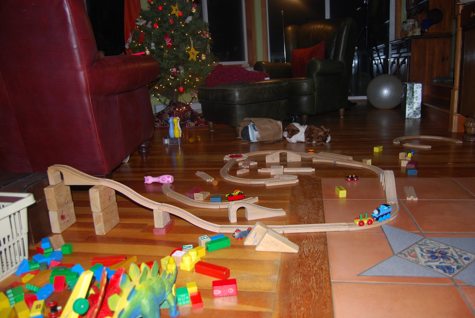 Nana’s not completely unhappy that those days are over. It’s fun to have dinosaurs and stuffed toys and giant balls and trainsets all over the livingroom. But it’s rather satisfying to tuck it all away in the toybox again and know it will stay there for weeks and weeks . . .