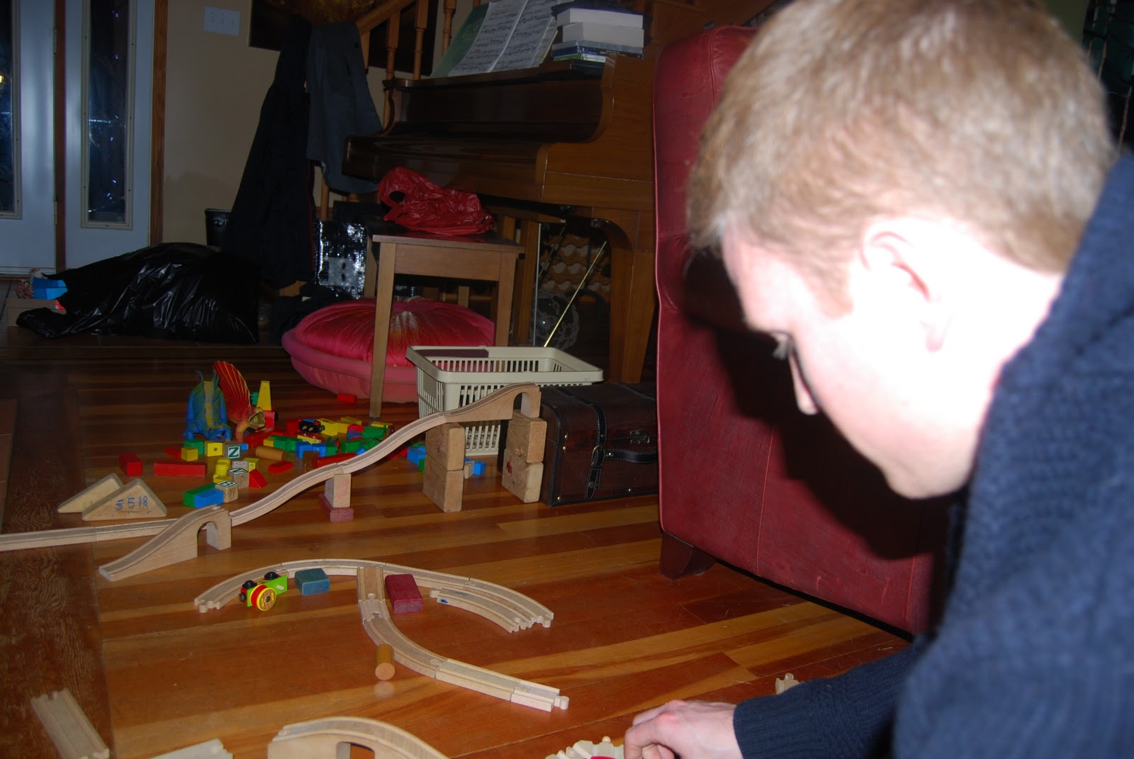 Besides gathering our bunch around a DoodleArt poster, Christmas has once again pulled some of us down to the floor for some train time. I was pleased to see this tradition continue from last year, when it was resumed after more than a decade. . .