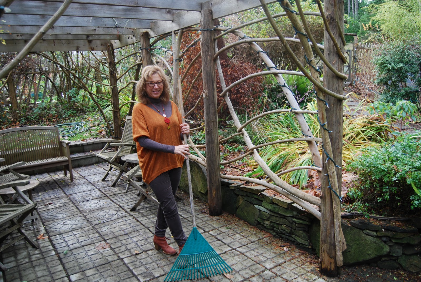 My photographer humoured me in trying out some new poses; I’m almost as credible raking the yard as I was chopping the firewood. . .