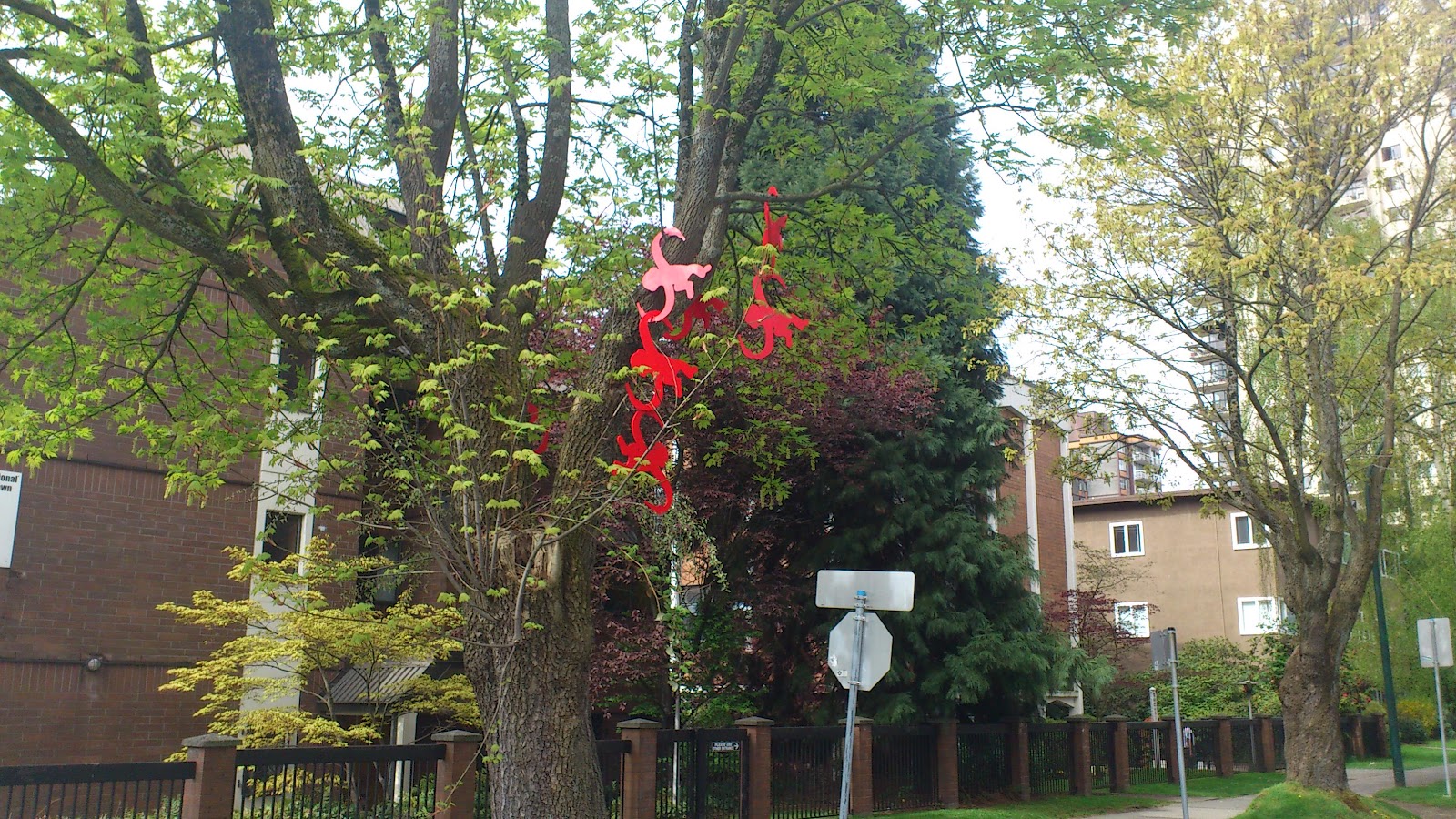 The escaped “barrel of monkeys” below were spotted during the walk back from crêpes yesterday. Nothing around to indicate whose amusing idea this was or who executed it, but if I hadn’t already been happy from my good run, the delicious crêpes, and the lovely spring sunshine, these would have made me smile.