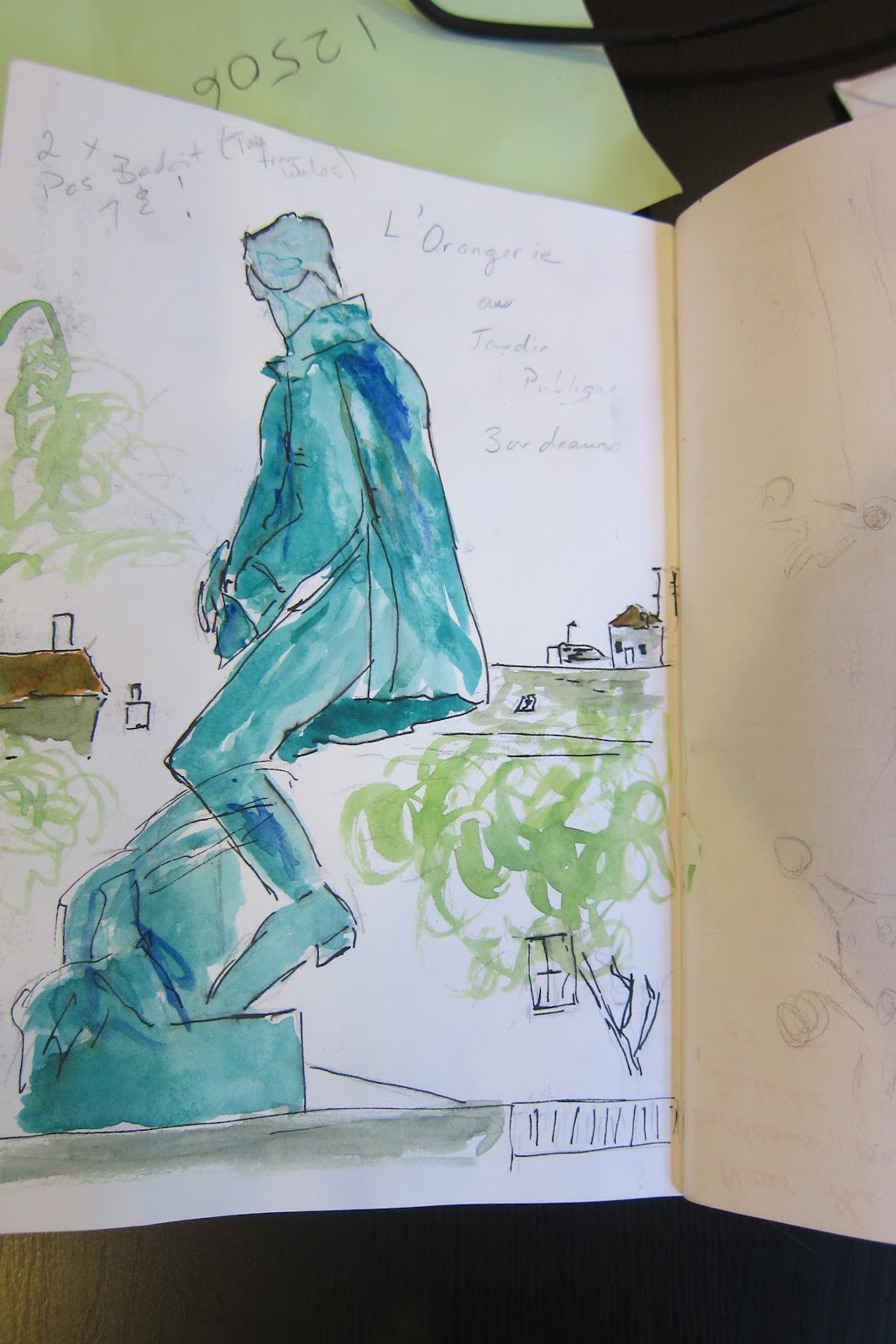 Finally, since you were all so kind about my sketch last post, I’ll show you another. This statue of lithographer Carle Vernet can also be found in the Jardin Public (you can read — in French, sorry — about all its statuesat this very informative site, I’ll admit I felt quite pleased about how he turned out.
