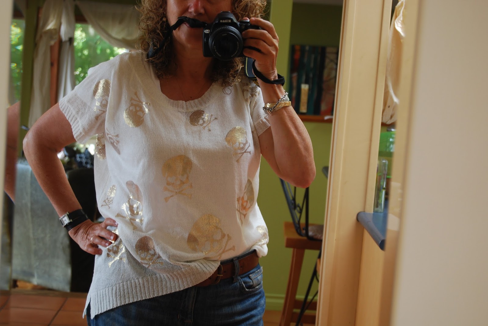 And I loved mixing these pearl-and-gold earrings with the skull shirt, although I do wonder what my mom would have thought of the pairing — they were her earrings, gifted to me a couple of years ago just because I admired them on her.