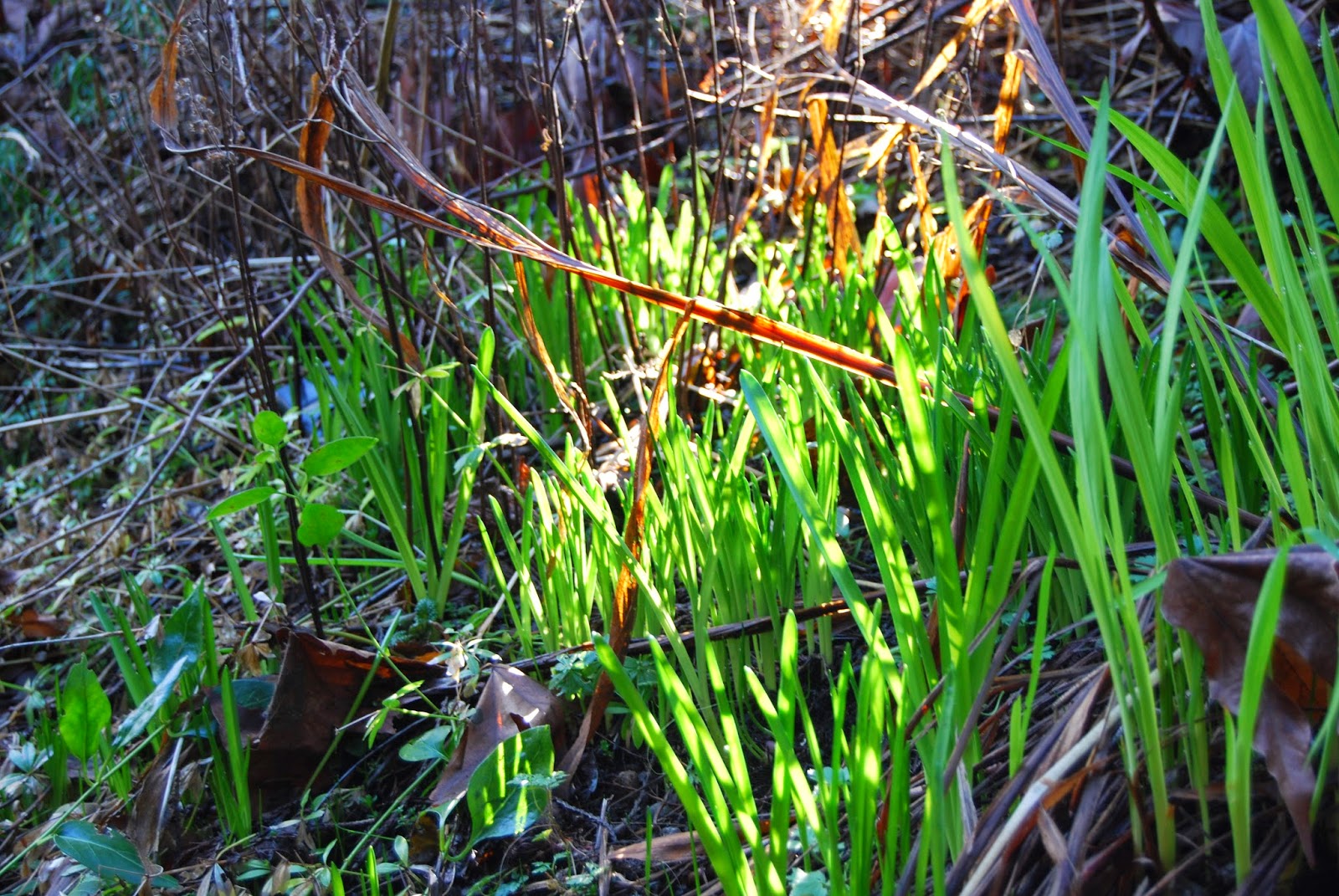 The fresh green against last year's debris – perfect. I agree that it is somehow so much more beautiful for the bleak setting.