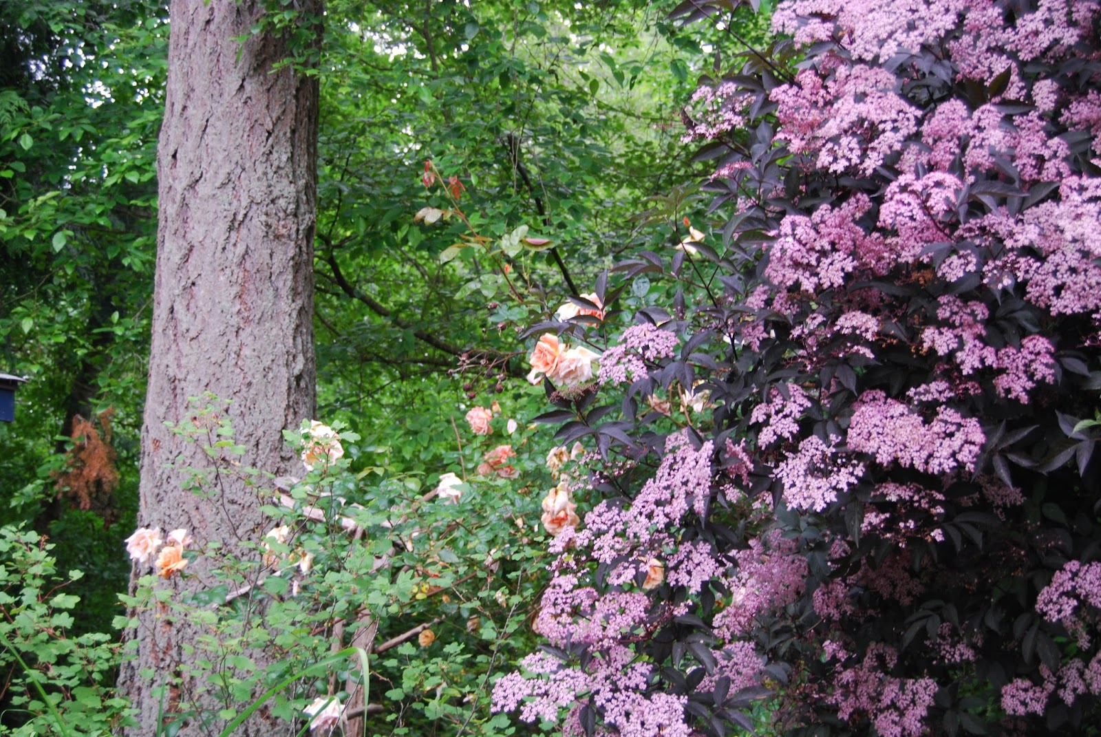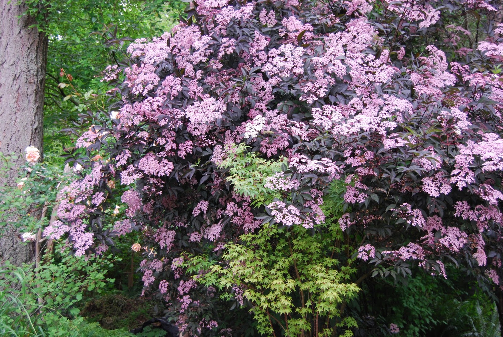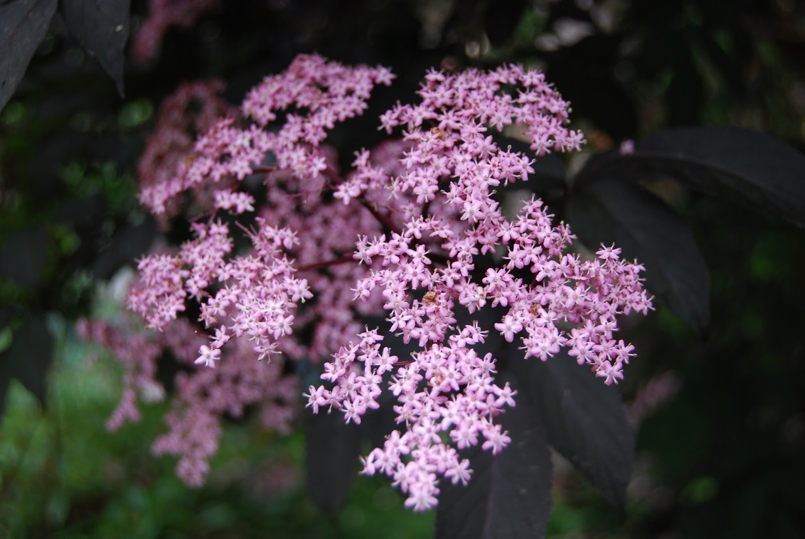 And yet. And yet. I can’t seem to resist. This Sambucus Nigra, in particular, with its dark purple foliage — almost black, hence the hort. name — complemented madly by the garishly lacy pink umbels. I’ve been snapping and snapping and I’ve posted several shots to Instagram, but because it’s been quite sunny here and I’m not clever enough with my camera (yet. I’m taking a weekend-long intensive course in a few weeks, my children’s generous retirement gift to me), the photos have generally been washed out, only suggestive of the near incandescence of this shrub.