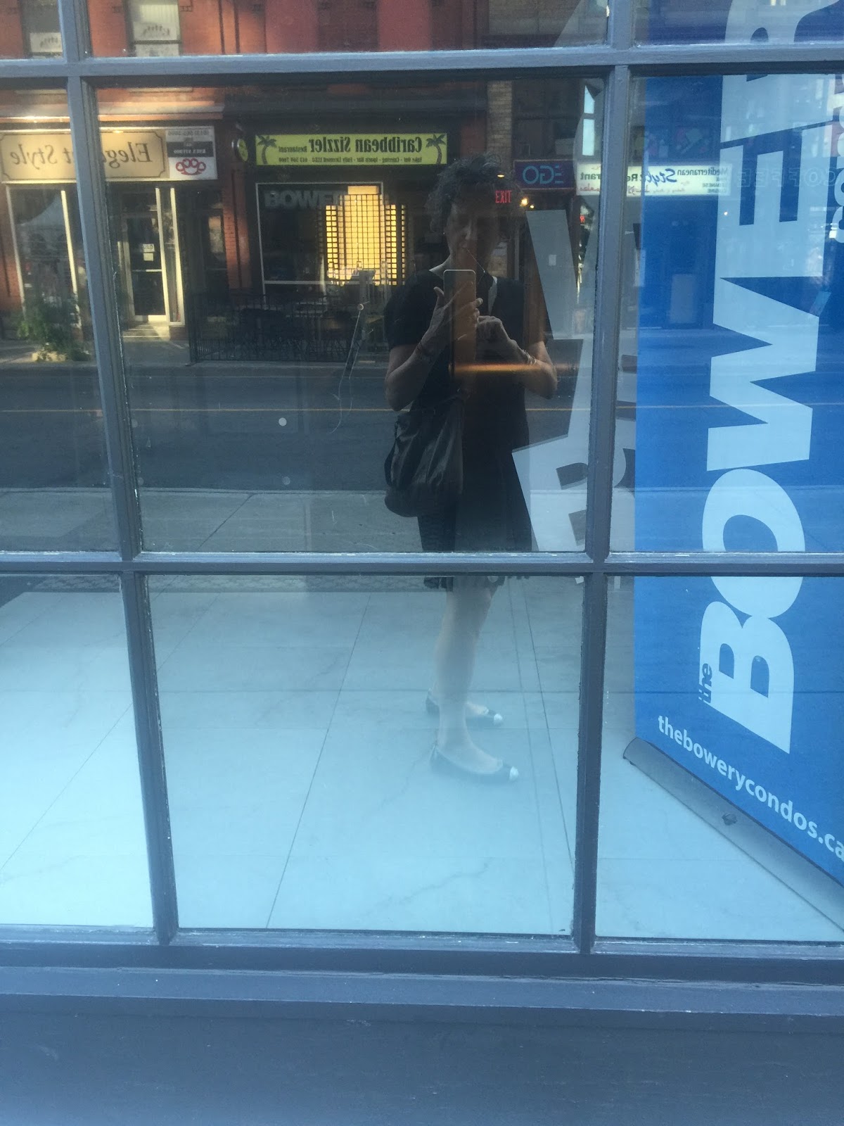 Bonus What I Wore shot — my black linen Madewell dress and hand-me-down (from my daughter) Bloch ballet shoes