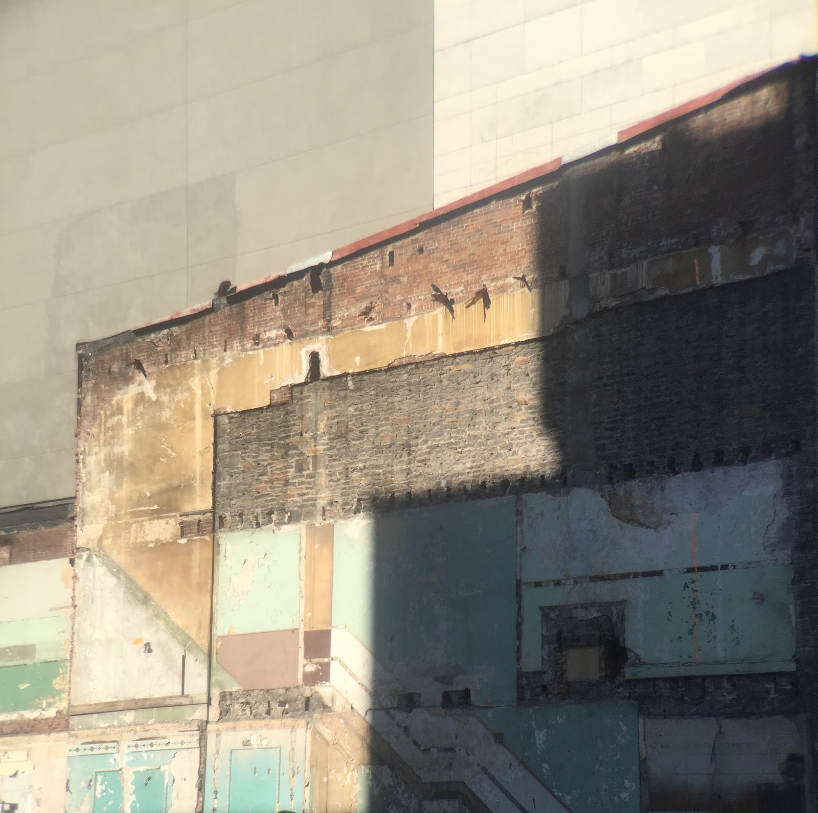 Beautiful shots: all that contrast of shape and colour. I particularly like the last two: the muted tones and geometrical shapes are just lovely, and forming traces of the houses that used to stand there – like a shadow on the wall. You can't help but wonder about the people who used to live here.