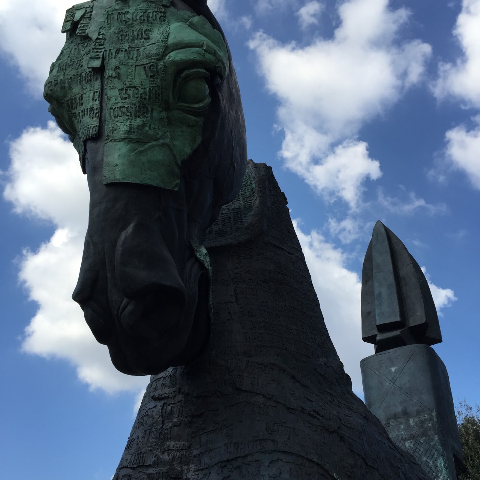 Mexican artist Gustavo Aceves has created a truly massive work, growing as it is exhibited around the world. It began in 2014 at Pietrosanta in Tuscany, moved from there to Berlin in 2015, has just begun in Rome and will be in that city until January 8, 2017. The sculptures I spotted as I walked up the hill the other day overlooking the Mercato di Traiano were, I can now see, part of this exhibition. There are currently over 40 individual, unique large-scale sculptures, mostly horses, and the exhibition will grow to 100 by the time it culminates, after stops in Corinth, Paris, Istanbul, and Venice, in Mexico City 2017.