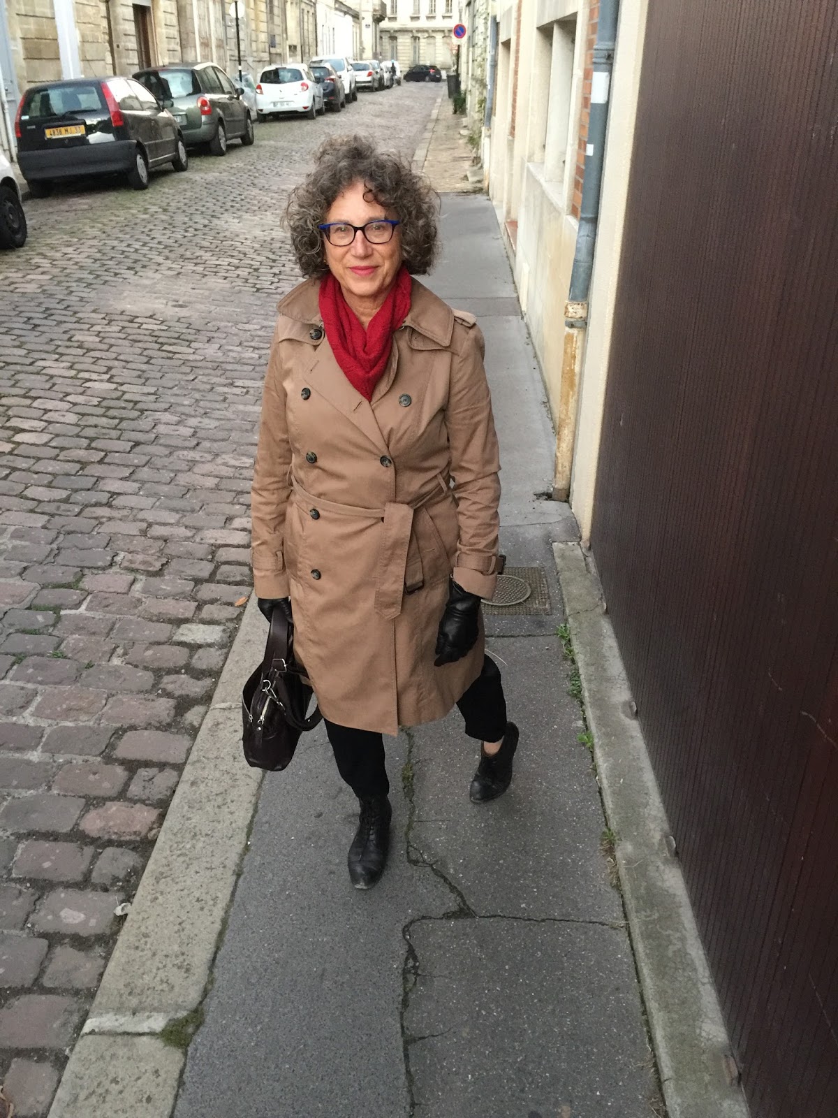Another sign that Autumn is getting its hooks in more firmly these days is that I’m reaching for my coat more often. Today, honestly, I’m wishing I could have brought my peacoat, but the trench is not bad if I wear a scarf and gloves, as below. More soon on how my #10weeks1carryon approach is working — still a month to go, and temperatures are sure to drop. . .