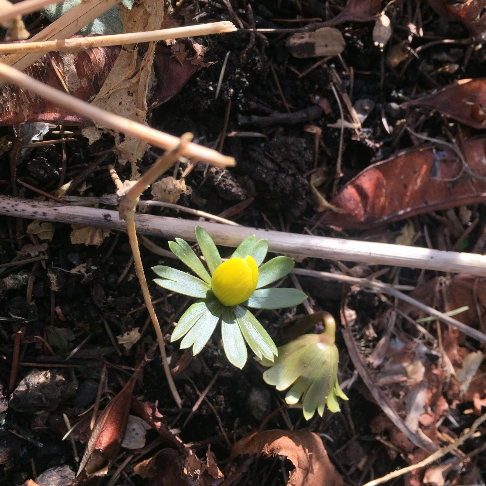 My mother used to love winter aconites — she described them to me so enthusiastically, I remember, as having little ruffs, like a clown’s, and as she and my dad were such regular visitors to the Van Dusen, I couldn’t help but feel, the other day, that she’d probably stood in the very same spot over the years, admiring these little guys. Mind you, she soon established a patch in her own garden and tried to settle some in for me years ago, in the shady part of my garden, ’round the side of the house on the way to the beach, but after a feeble showing for one or two winters, I never saw them again. . .