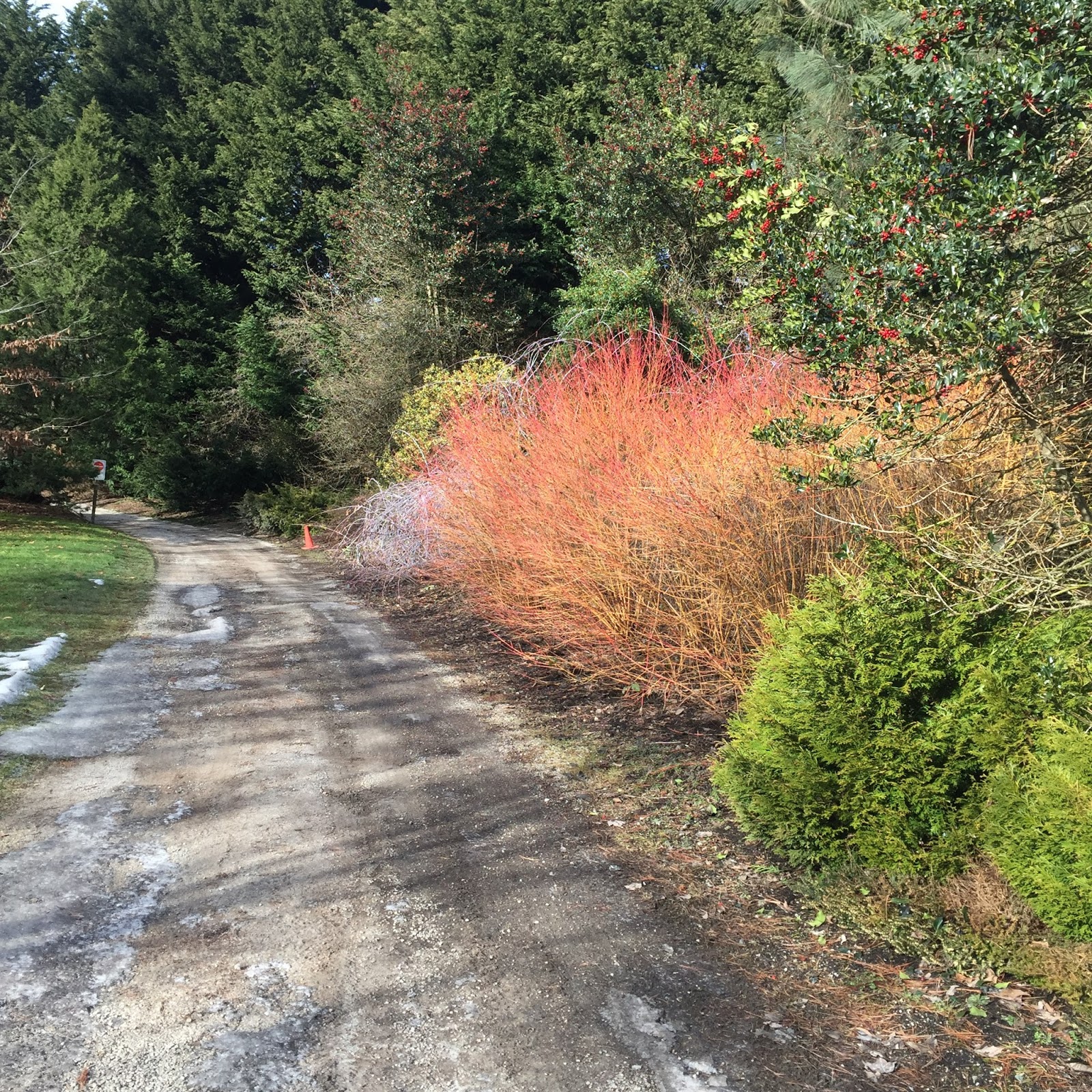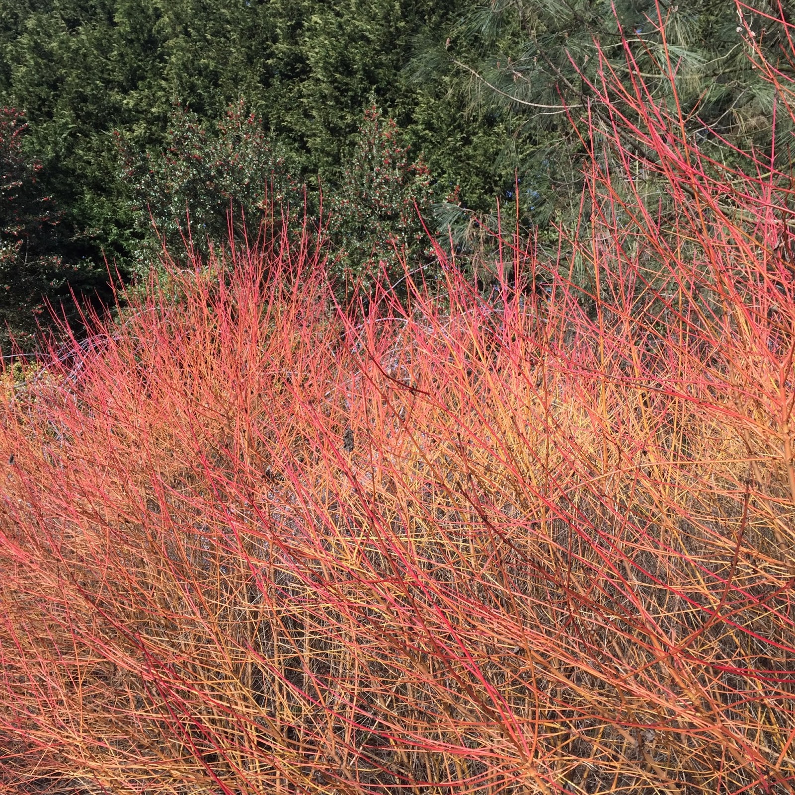 The plantings of Red-twig Dogwood (Cornus sanguinea) ‘Midwinter Fire’ were in sublime form. If you enlarge the photo below, you might be able to see the brilliant complement of red, orange, and yellow berries in the surrounding trees