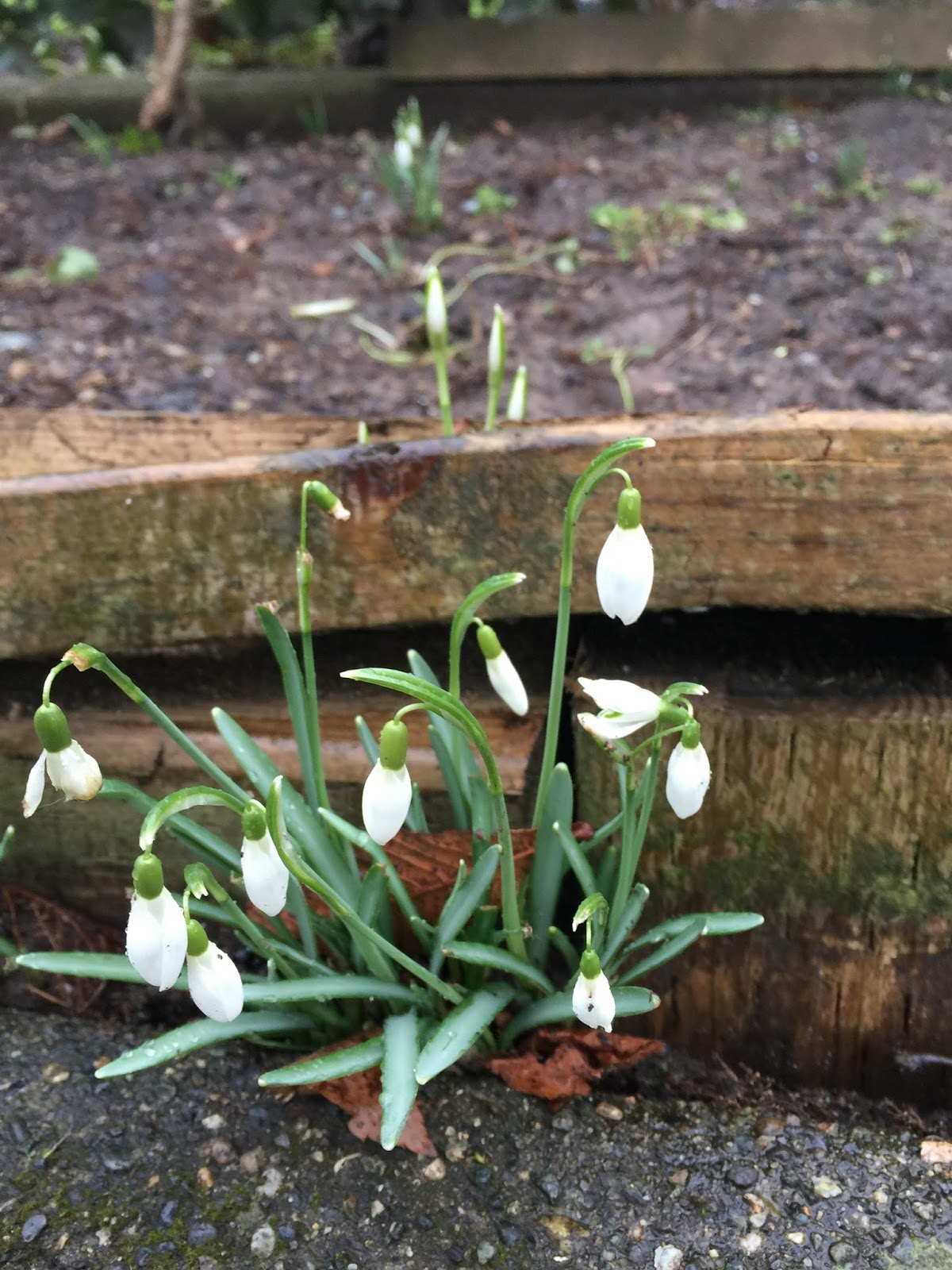 Below, not on our terrace, sadly, but I’ve been seeing so many snowdrops while out running, and I often use them as an excuse to stop. . . .