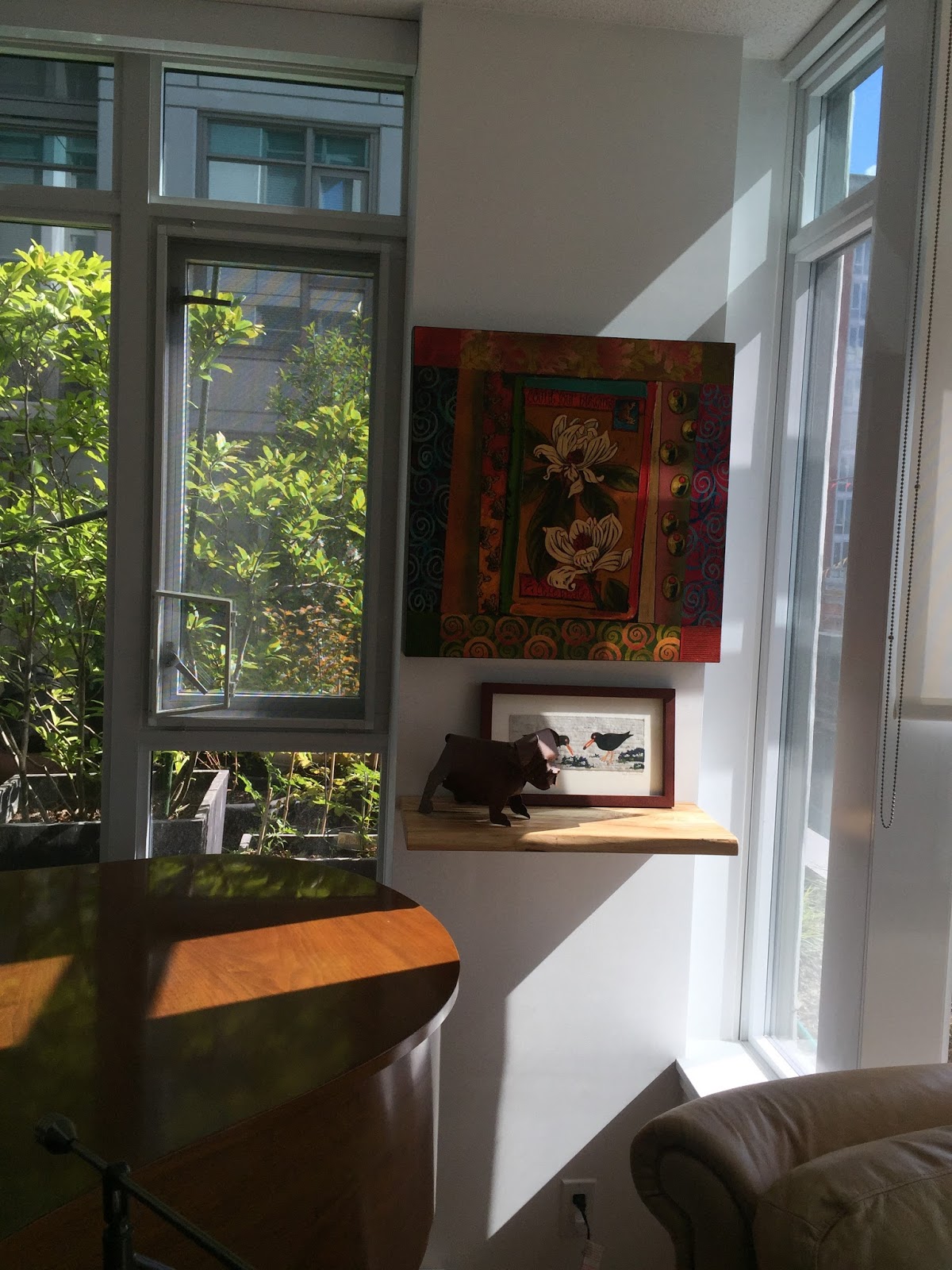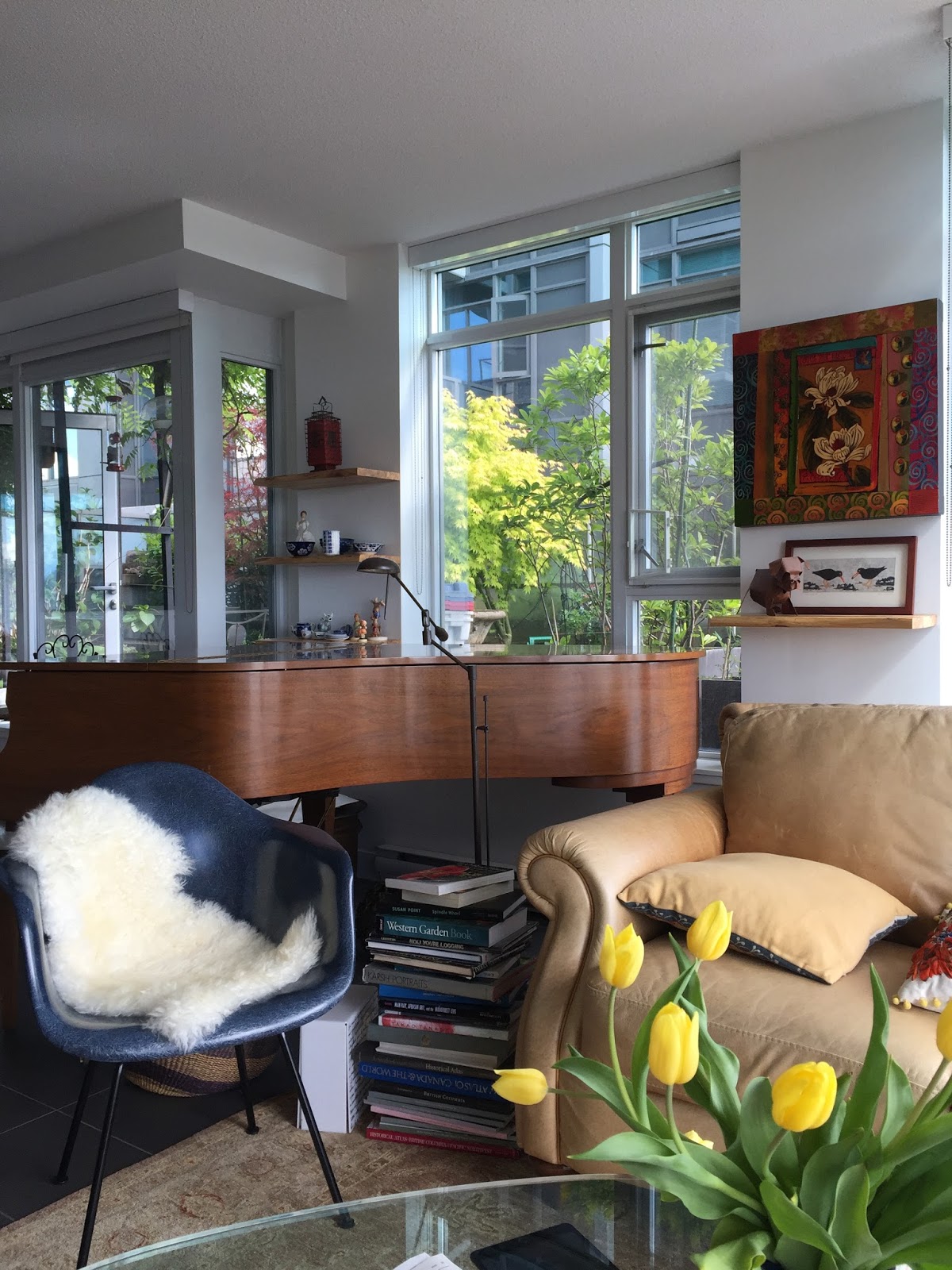Mmm, lots of greenery and light framing your condo. So many "homes" look like stage sets to me, places waiting for the actors and action. Makes sense for the young of course who may be waiting for life to somehow happen to them, if only the stage is perfectly set. For those of us who are a bit further along, living our lives, home is homier.