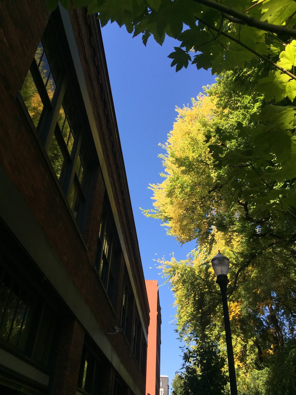 The architecture, of course, which I love about Portland. So much ornamentation of brick and stone and concrete, and the way it all interacted, last week, with a gorgeous cerulean September sky.