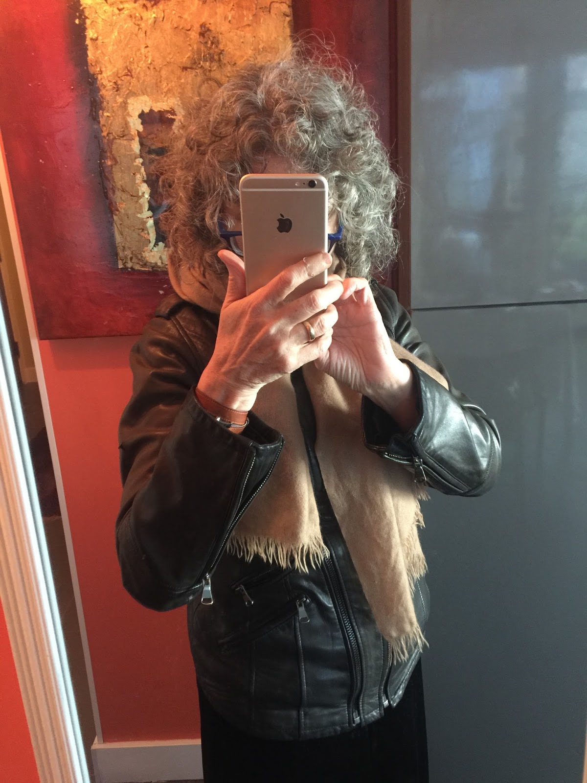 My most recent night out also featured a Moto jacket–a style I've always liked and never thought of wearing until a recent consignment store find. Mine is made of waxed cotton by Eileen Fisher. The price was right, the fit was good, and I think it suits me after all!