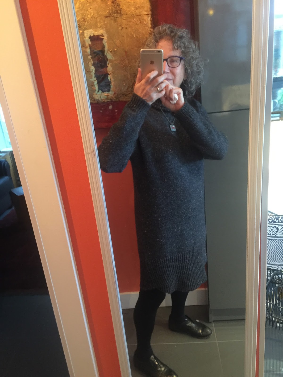 Your new knitted dress looks great on you. It's made me realise I haven't worn one yet this winter and they're so easy to wear as well as cosy. I've almost been wearing a uniform of shades of grey and black.Just so easy and requires very little thought πŸ™‚ It does mean other clothes are somewhat neglected maybe.