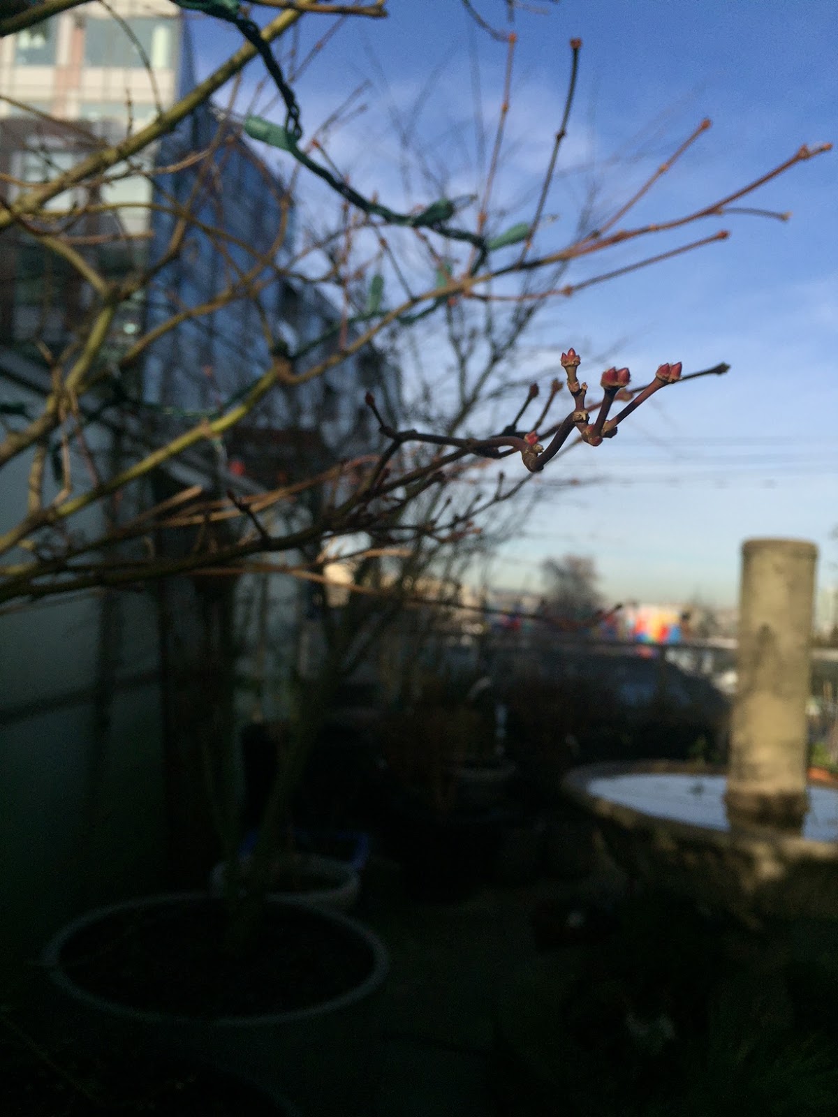 Lots of green tips showing here but there’s been so many dollops of late snow recently I think the plants are nervous . Is it very rare for condos to have garden terraces there ? Might you find a bigger place with an area for you plants ?