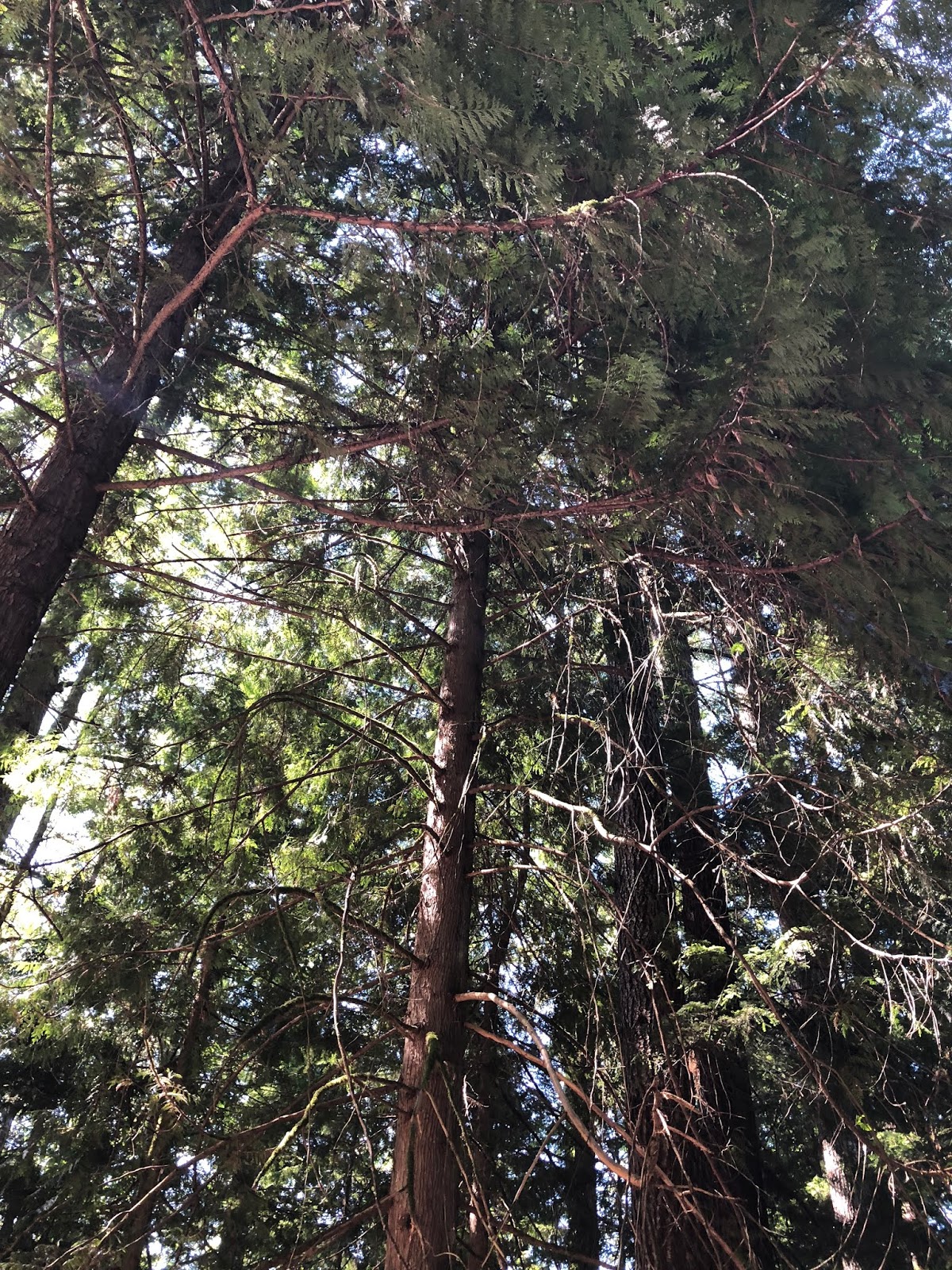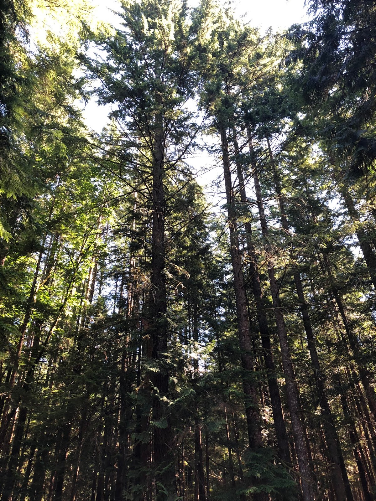 Do the children sense some of that as well? We point out the graceful arc of a vine maple, stretching its slender 30-foot trunk into what my granddaughter sees as a rainbow shape — she loves the daintyness of its small leaves, more familiar as she is with its larger cousin, the big-leaf maple. We laugh together at the effrontery of a young fir growing from the five-foot-high trunk of a tree chopped down decades ago.