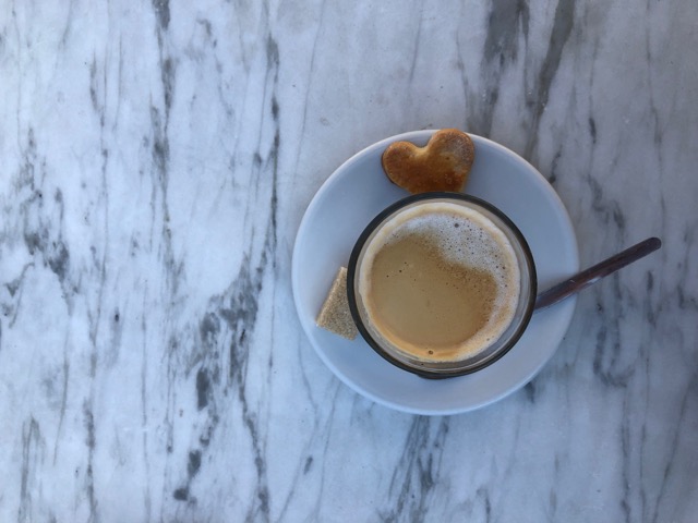The tables and chairs have a charmingly funky brocante appeal, and the service is always friendly, the coffee good. . .