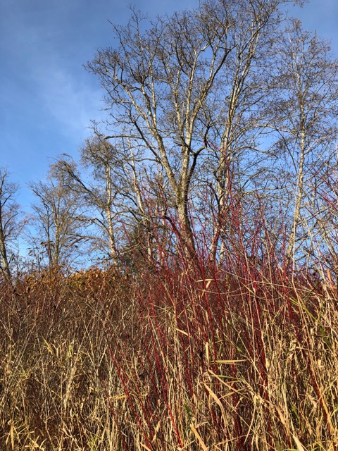 This past week, the Random Abundance has included a ferry ride to visit a friend, a 15-kilometre bike ride to a favourite destination where we walked a few more kilometres to see the salmon spawning–and had the bonus of watching a mink land a fish she’d just caught. We saw a brilliant performance of two contemporary ballet works — gorgeous! I had a French class and we took our Italian class. We checked out stunning ceramic work in an exhibition in which “21 Artists Explore Gender and Relationships in Clay.” Started and have almost finished knitting the second sleeve to my wildly striped sweater. And I stretched my body back into alignment with some great music in the company of several other bodies all guided by a generous and encouraging trainer. Walked along the waterfront at night, city lights shining back from the dark liquid surface, holding my guy’s hand (both of us wearing our leather gloves against the frost). . . .